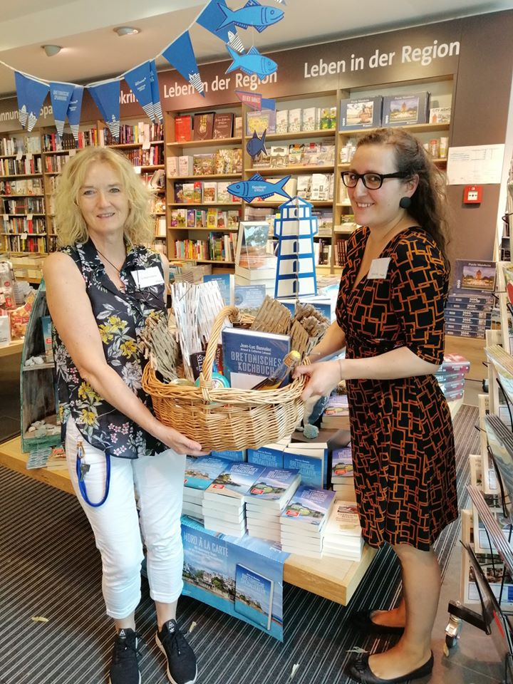 „Leben in der Region“ – Die Buchhandlung Thalia in Mannheim Planken hat es jetzt (zumindest literarisch und kulinarisch) in die Bretagne verschlagen.Weil sie nämlich den ersten Preis, einen Feinkost-Geschenkkorb mit bretonischen Spezialitäten, des „Bannalec-Deko-Gewinnspiels“ von Kiepenheuer & Witsch mit dem im Hintergrund aufblitzenden Präsentationsspektakel gewonnen hat.