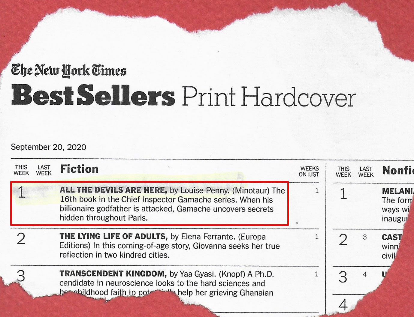 Louise Pennys Krimiserie um Inspector Armand Gamache und das kleine Dorf Three Pines, tief in den Wäldern gelegen, ist Kanadas weltweit erfolgreichste Krimiserie. Der 16. Fall All the Devils Are Here (im Kampa Verlag in Vorbereitung) ist soeben in den USA erschienen und noch vor dem neuen Roman von Elena Ferrante auf Platz 1 der New-York-Times-Bestsellerliste eingestiegen: