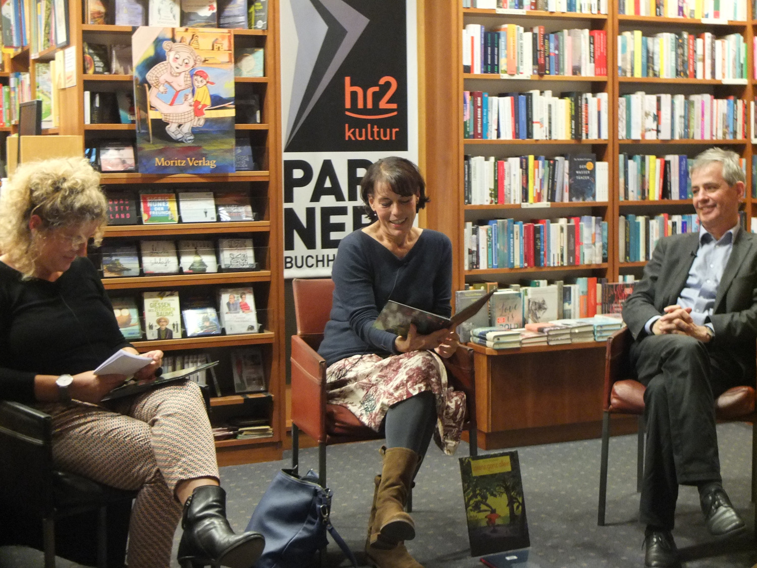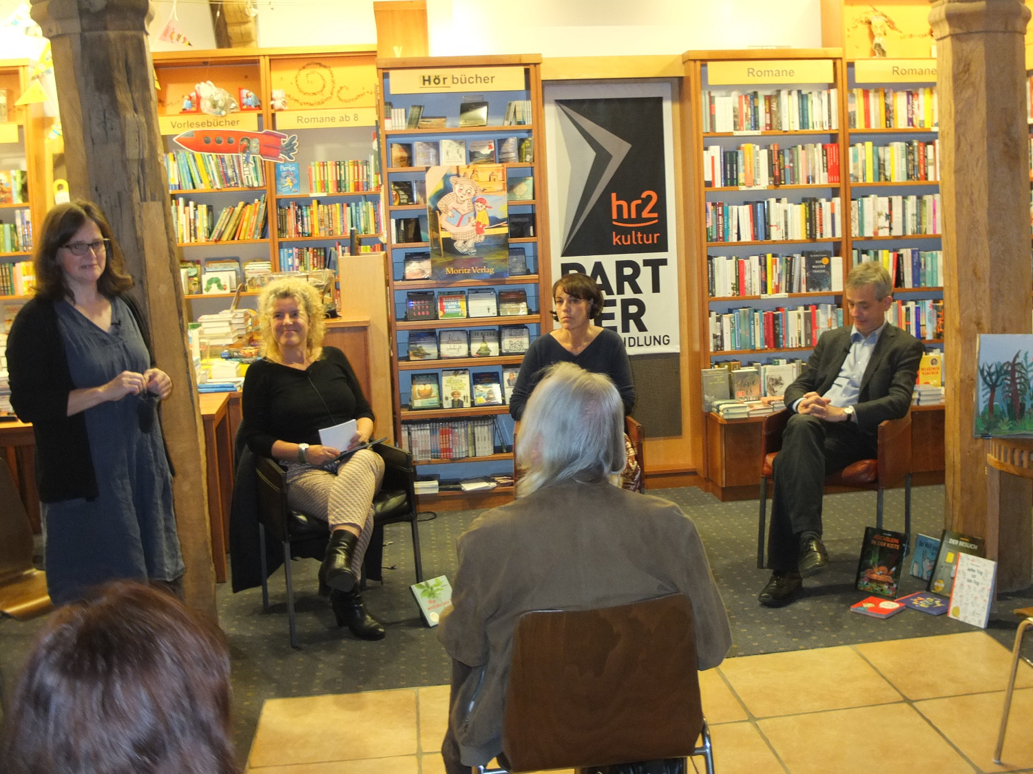 Am gestrigen Mittwoch hatte der Moritz Verlag gemeinsam mit Buchhändlerin Friederike Herrmann in die Buchhandlung Bindernagel geladen, um das neue Bilderbuch von Antje Damm vorzustellen. Gleichzeitig war die Veranstaltung der Auftakt einer Reihe, die der Radiosender hr2 der hessischen Verlagslandschaft widmet.