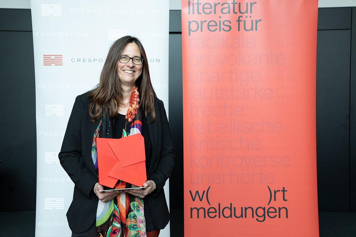 Kathrin Röggla bedankte sich für die besondere Auszeichnung und „den Auseinandersetzungsraum, der sich mit diesem Preis verbindet“.