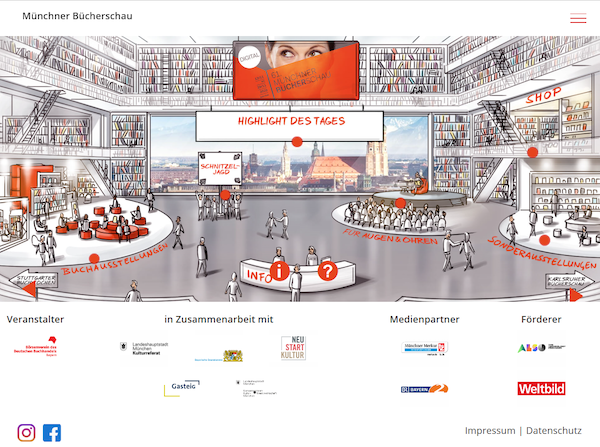 Münchner Bücherschau geht bis zum 6.12. kurzfristig in die Verlängerung und dauert damit erstmals länger als drei Wochen. Michael Then, der Vorsitzende des Landesverbands Bayern des Börsenvereins, begründet diese Entscheidung: „Der Zuspruch ist richtig gut. Es hat uns überrascht, wie gut die Buchfans das Angebot annehmen. Die hohen Klickzahlen im sechsstelligen Bereich und die lange Verweildauer ermutigen uns, noch eine Woche an die Bücherschau zu hängen und dem Lesepublikum vor Weihnachten die Gelegenheit zu geben, digital ihre Lieblingsautoren sowie neue Bücher zu entdecken.“