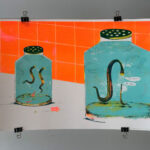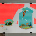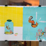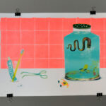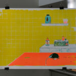 Hier stellt sich Nele Brönner selbst vor: „Ich bin gar nicht so oft im Home-Office, aber ziemlich isoliert. Da ich meinen Arbeitsplatz in einem sehr geräumigen Atelier habe und meine Kollegen ohne kleine Kinder netterweise ins Home-Office umgezogen sind, kann ich weiter hier im Studio arbeiten. Ich arbeite zum ersten Mal an einem langen Comic – vielleicht einer Graphic Novel mit dem Arbeitstitel Ponyethnografie. Die Arbeit daran ist neu und sehr fordernd für mich. Ich habe nur schwer ins Zeichnen gefunden und lange, lange mit meinem künstlerischen Ausdruck und der Erzählung gerungen. Weiter ins Atelier kommen zu können, hilft mir sehr, konzentriert und jetzt wieder produktiv zu sein. Aber es ist einsam geworden. Heute, zum Beispiel, bin ich ganz allein und finde den Titel der Serie daher auch für mich sehr passend.