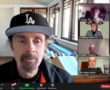 „Das ist eine geschlossene Veranstaltung, es kommen nur geladene Gäste“, sagte uns Hanser-Pressesprecherin Christina Knecht kurz vor dem Zoom Event. „Wir sind jetzt bei 150 Personen. Wir haben breit eingeladen: Buchhändler und ausgewählte Literatur-Blogger, eine wunderschön bunte Mischung. Es sind Kolleginnen und Kollegen von Thalia und Hugendubel dabei, aber auch viele Buchhändlerinnen und Buchhändler aus inhabergeführten Buchhandlungen“, so Knecht. Hanser hat dieses Event früh und breiter als einen „analogen“ Buchhändlerabend kommuniziert: Über das Leseexemplar von „Sprich mit mir“, über den digitalen LE-Versand und via Handelsnewsletter. Die Veranstaltung dauerte etwa eineinhalb Stunden. Auch der Vertrieb und das Marketing kamen zu Wort: Hanser hat einen Mund- Nasenschutz mit dem Affen-Logo des Covers herstellen lassen. Der passt auch thematisch, da es T.C. Boyle nicht zuletzt um die Machtfrage geht: „Wir sehen gerade, dass es mächtigere lebende Organismen gibt als den Menschen“, so der Autor. Alle blieben bis zum Schluss, wo es im Chat Dankeschöns und Glückwünsche hagelte. Auf der Suche nach gelungenen neuen Präsentationsformen in Pandemie-Zeiten ist das ein weiterer Schritt. Am Sonntag, 24. Januar findet dann die öffentliche Weltpremiere auf RBB Radio Eins statt, wieder mit Live-Schalte zu T.C. Boyle.