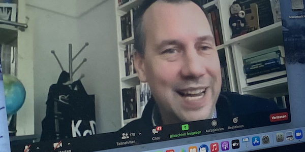 Sebastian Fitzek gestern auf buch@handel.de: „Der persönliche Kontakt zu den Buchhändler*innen bedeutet mir viel. Und außerdem verspreche ich: Der nächste Thriller ist schon wieder in Arbeit“