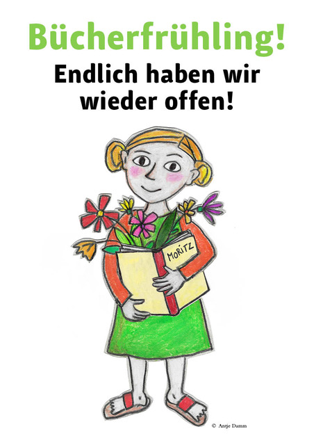 Auch der Moritz Verlag freut sich mit dem Buchhandel über die Wiederöffnung der stationären Läden am kommenden Montag. Die Illustratorin und Autorin Antje Damm hat ein Motiv gestaltet, das hier zum kostenlosen Download zur 3Verfügung steht. Das Mädchen mit dem Frühlingsbuch im Arm ist Lilo, Protagonistin von Antje Damms neuem Bilderbuch Die Wette. Im aktuellen Special Junge Zielgruppe im März-BuchMarkt haben es drei BuchhändlerInnen zu ihrem Lieblingsbilderbuch der Saison erklärt.