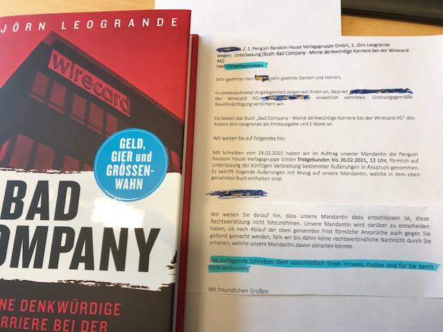 Rainer Dresen: Uns war klar, dass ein derart brisantes Buch nicht allen Protagonisten gefallen wird, von denen derzeit nicht wenige aus guten Gründen auch Staatsanwälten Rede und Antwort stehen müssen. Aber dass es dann einzelne große Händler selbst sind, die das Buch in vorauseilendem Gehorsam vom Markt nehmen, das hat uns dann doch überrascht. Wir haben das Buch deshalb besonders sorgfältig geprüft, wohlwissend, dass es trotzdem Versuche geben wird, das Buch zu stoppen. Da gab es etwa den ehemaligen Wirecard-Mitarbeiter der schon vor Publikation einen Anwalt mit der etwas naiven Bitte vorschickte, ein „Leseexemplar“ zu erhalten, garniert mit der Ankündigung, dass nur so „Weiterungen“ vermieden werden können. Andere drohten eher allgemein rechtliche Schritte an, wenn wir die „Unschuldsvermutung“ ihrer honorigen Mandanten nicht beachteten, wieder andere monierten vermeintliche Ungenauigkeiten der zeitlichen Abläufe. Eine Anwaltskanzlei schickte uns Mittwoch letzter Woche eine konkrete Unterlassungsaufforderung. Wir lehnten auch in jenem Fall eine Änderungsverpflichtung ab, boten aber zur Streitvermeidung eine freiwillige Änderung für künftige Auflagen an. Das wiederum lehnten die Anwälte ab, was wir durch Einlegung einer sogenannten Schutzschrift bei Gericht erwiderten. Seitdem sind knapp zehn Tag vergangen und wir haben nichts von den Gerichten gehört.