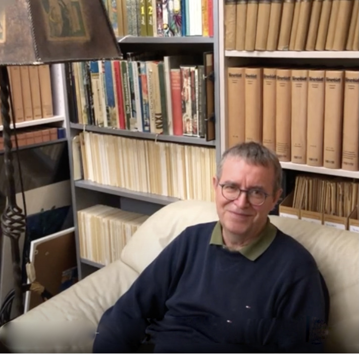 Im Internet kursiert ein YouTube Film, in der Professor Siegfried Lokatis, der Lehrstuhlinhaber der Leipziger Buchwissenschaft, sein Leipziger Bibliotop vorstellt. Aus dessen Sammlung wird auch die jährliche BuWision  bestückt, mit der seine StudentInnen (diesmal allerdings nur digital) jeweils zur Buchmesse die Highlights der Sammlung in der Innenstadt sichtbar machen – aber das wohl zum letzten Mal im kommenden Jahr. Das war Anlass für unser heutiges „Sonntagsgespräch“: