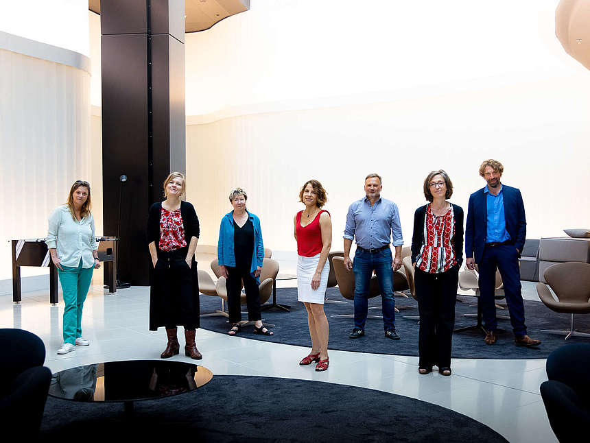 Die Jury: (v.l.n.r.): Sandra Kegel, Anja Johannsen, Beate Scherzer, Anne-Catherine Simon, Richard Kämmerlings, Bettina Fischer, Knut Cordsen