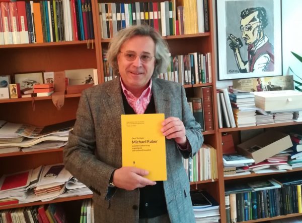 Zum 60. Geburtstag des Leipziger Verlegers Michael Faber ist im Verlag Battista Barolo Publishers (Leipzig, Paris, New York, Timbuktu) eine Festschrift erschienen – sichtlich zur Freude des Jubilars (Foto).Unter dem Motto des Bandes: „Gott bewahre mich vor jemand, der nur ein Büchlein gelesen hat“ (Thomas von Aquin) hat dabei Herausgeber Beppe Brunello du Pape Wort- und Bildbeiträge von Autoren, Künstlern, Freunden und Wegbegleitern (w/m/d) des Jubilars versammelt, darunter Jonathan Böhm, Volker Braun, Ulrich Faure, Hubertus Giebe, Sighart Gille, Josef Haslinger, Johannes Heisig, Wolfgang Hocquel, Simeon Hüttel, Alain Lance, Andreas Platthaus, Hans Ticha, Jan Peter Tripp, Klaus Waschk, Baldwin Zettl und vielen anderen.