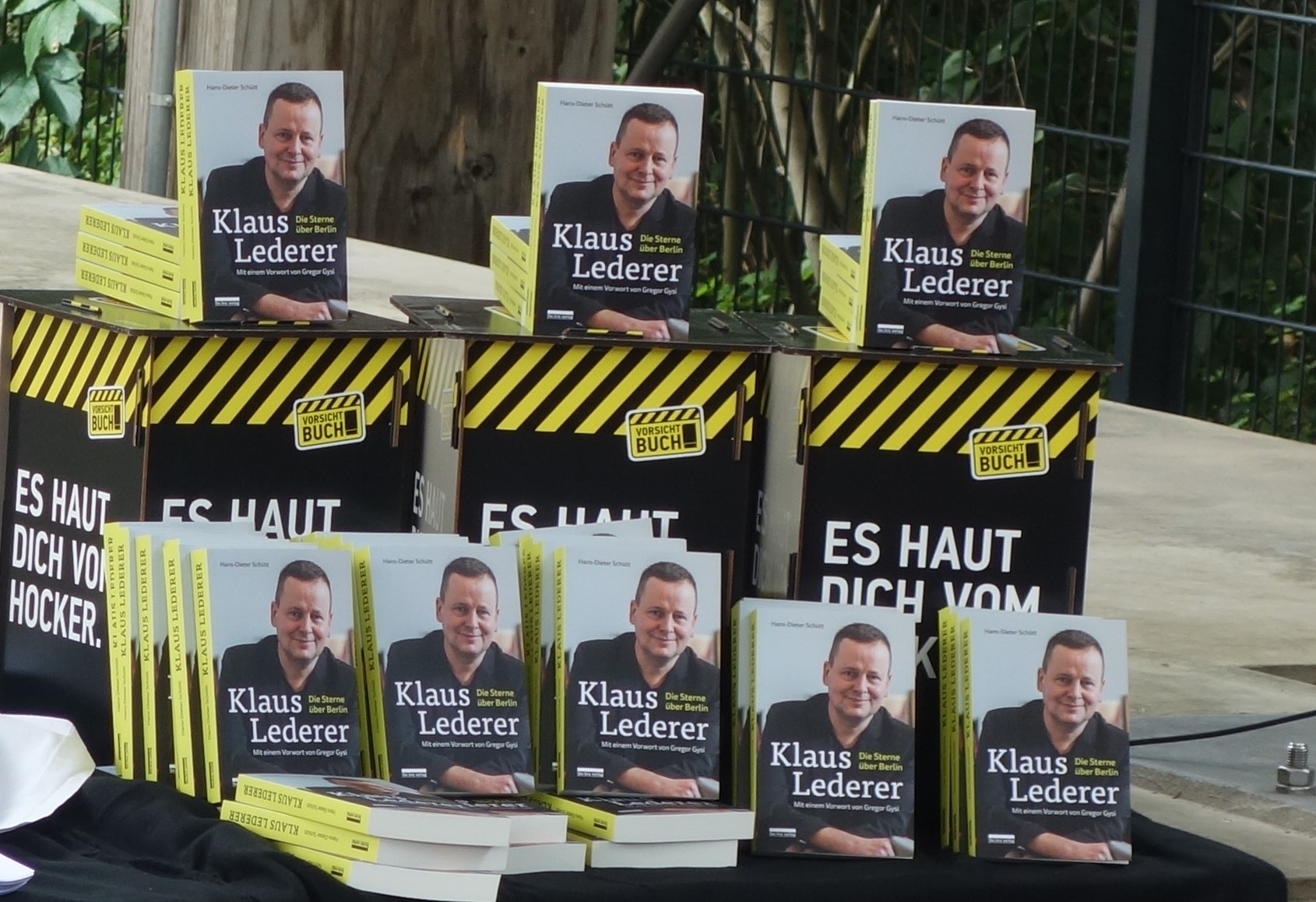 Überhaupt sei Berlin die Hauptstadt der Autorinnen und Autoren. Ein vielfältiger Buchhandel gehöre ebenso dazu wie eine diverse Verlagslandschaft. Der Erhalt der Bibliodiversität sei eine öffentliche Förderungsaufgabe, sagte Lederer, der 2018 den Berliner Verlagspreis mitinitiierte. Gestern bedankte er sich beim Landesverband für die gute Zusammenarbeit bei der Preisvergabe. Johanna Hahn enthüllte anschließend einen ganzen Stapel des Buches Klaus Lederer – Die Sterne über Berlin von Hans-Dieter Schütt, das mit einem Vorwort von Gregor Gysi jetzt im be.bra Verlag erschienen ist. Und Lederer signierte unermüdlich Exemplare für die Gäste.