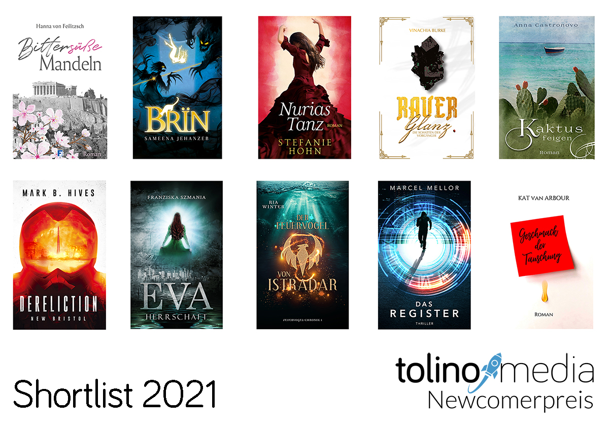 Nach dem Erfolg im letzten Jahr präsentiert tolino media die Shortlist für den tolino media Newcomerpreis 2021. Zehn Selfpublishing-Titel aus unterschiedlichen Genres konnten die diesjährige Jury, bestehend aus dem tolino-media-Selfpublishing-Team sowie vier Buchblogger*innen, überzeugen. Auch 2021 ist die Mischung „bunt und voller Vielfalt.“