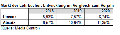Umsatz und Absatz von gedruckten und digitalen Lehrbüchern sind in den letzten drei Jahren deutlich zurückgegangen: