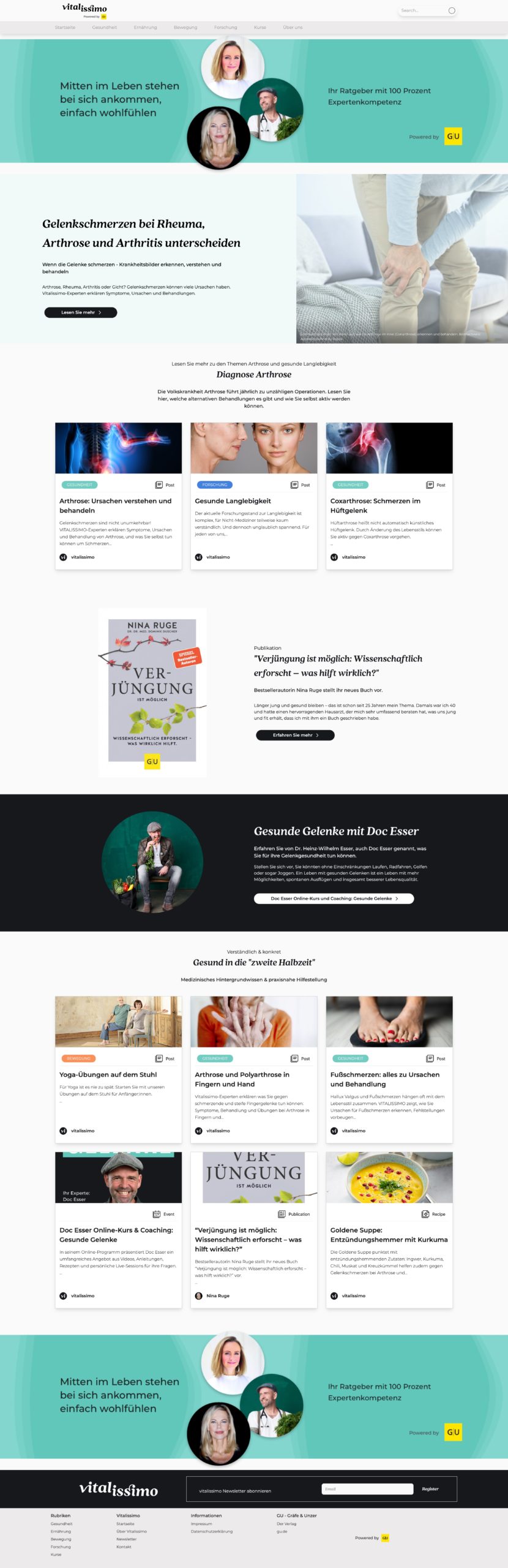 Gräfe und Unzer startet im September 2021 sein neues Onlineportal Vitalissimo.de. Hier finden die Nutzer*innen in Zukunft Ratgeberinformationen, Online-Kurse, Online-Workshops und vieles Mehr zu den Themen Gesundheit, Ernährung und Bewegung.