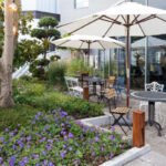Der Literaturgarten ist nun lebendig, mit neuer Bepflanzung, Lichterketten, Biertischen, Liegestühlen, einer kleinen Arena und einem bunten Kräutergarten für unsere Küche. Im Literaturgarten, umgeben von Pflanzen und einer wunderbaren Ruhe, fernab vom Lärm der Straße, kann man innehalten und sich auf sich selbst konzentrieren.: