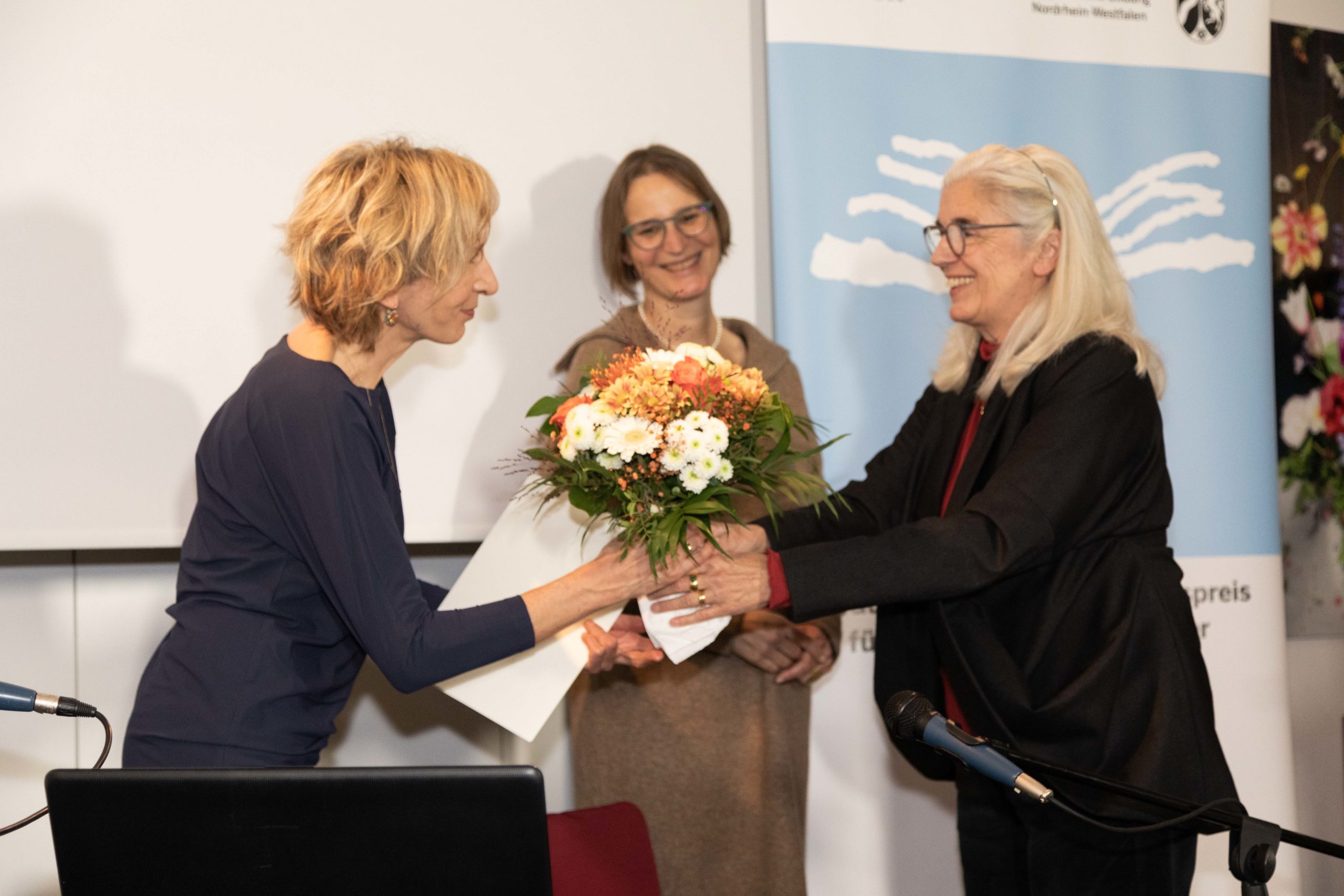 Isabel Pfeiffer-Poensgen, Ministerin für Kultur und Wissenschaft, verlieh die mit 7500 Euro dotierte, renommierte Auszeichnung im Düsseldorfer Heinrich Heine Haus.