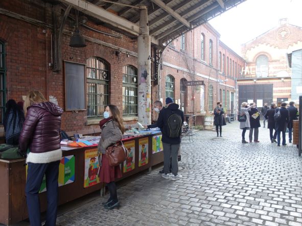 Nach der Absage der Leipziger Buchmesse hatten die Verleger Leif Greinus vom Verlag Voland & Quist und Gunnar Cynybulk vom Kanon Verlag die Veranstaltung initiiert. Die Nachfrage der Aussteller sei so groß gewesen, dass die Kapazitätsgrenze schnell erreicht war, erzählt Leif Greinus und betont, dass die popup eine einmalige Veranstaltung bleiben soll. Es gehe darum, ein Zeichen für die Buchmessestadt Leipzig zu setzen, war von Seiten der Aussteller zu hören, und die Leipzigerinnen und Leipziger sind ein lesefreudiges Publikum. Die Eintrittskarten für zweistündige Slots waren in kurzer Zeit ausverkauft. Tatsächlich gab es kein Gedränge. Ein Hof mit Foodtruck bot bei sonnigem Wetter zudem Gelegenheit zum Durchlüften. Zum Hygienekonzept gehörte ein Moderator, der jeweils nach zwei Stunden die Besucher auf charmante Art und Weise zum Verlassen der Halle aufforderte.