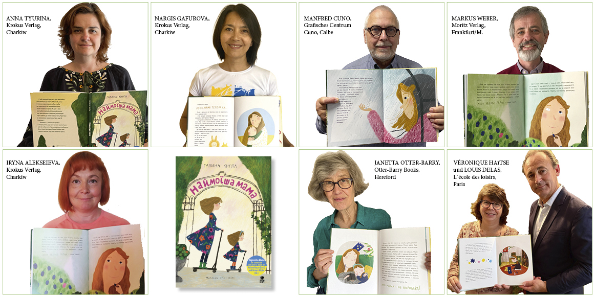 Im Rahmen der Hilfsaktion Adopt an Ukrainian Children’s Book adoptieren europäische Kinderbuchverlage ein ukrainisches Kinderbuch und bringen es auf eigene Kosten heraus. Sobald diese gedeckt sind, geht der Gewinn an den ukrainischen Verlag. Najmoisha Mama wird zudem auf dem französischen und englischen Markt erscheinen. Die Kinder- und Jugendbuchverlage L’école des loisirs und Otter-Barry-Books beteiligen sich an der Hilfsaktion und übernehmen einen Teil der Auflage. L‘école des loisirs hat ebenfalls ein Kinderbuch aus der Ukraine adoptiert: Dyktuvala tse soroka, a zapysyvav jizhak (Die Elster hat’s diktiert, der Maulwurf aufgeschrieben) wird ab sofort über den Moritz Verlag im deutschsprachigen Raum vertrieben. Beide Titel sind für den Buchhandel über die üblichen Vertriebswege zu beziehen.