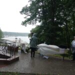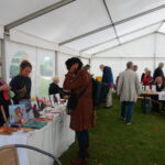 Der guten Stimmung konnten auch die wenigen Regenschauer nichts anhaben. Dann wurden die Büchertische kurzzeitig abgedeckt oder ins Zelt getragen, das die Veranstalter vorsorglich aufgebaut hatten, um die Aussteller und Gäste vor Regen zu schützen. Begleitet wurde die Gartenmesse von einem Veranstaltungsprogramm im Saal des LCB, wo im Viertelstundentakt Autorinnen und Autoren der beteiligten Verlage aus ihren Büchern lasen.