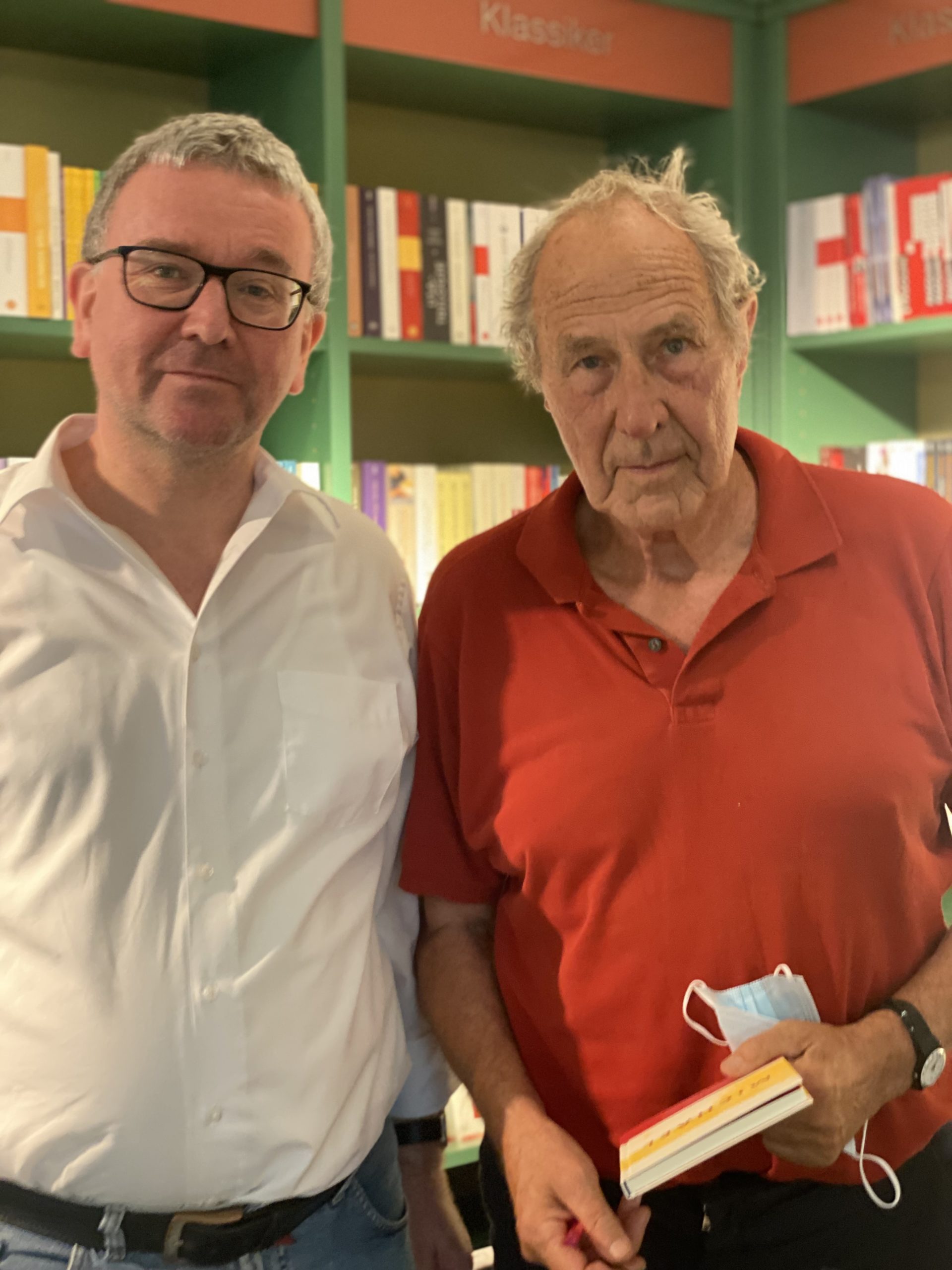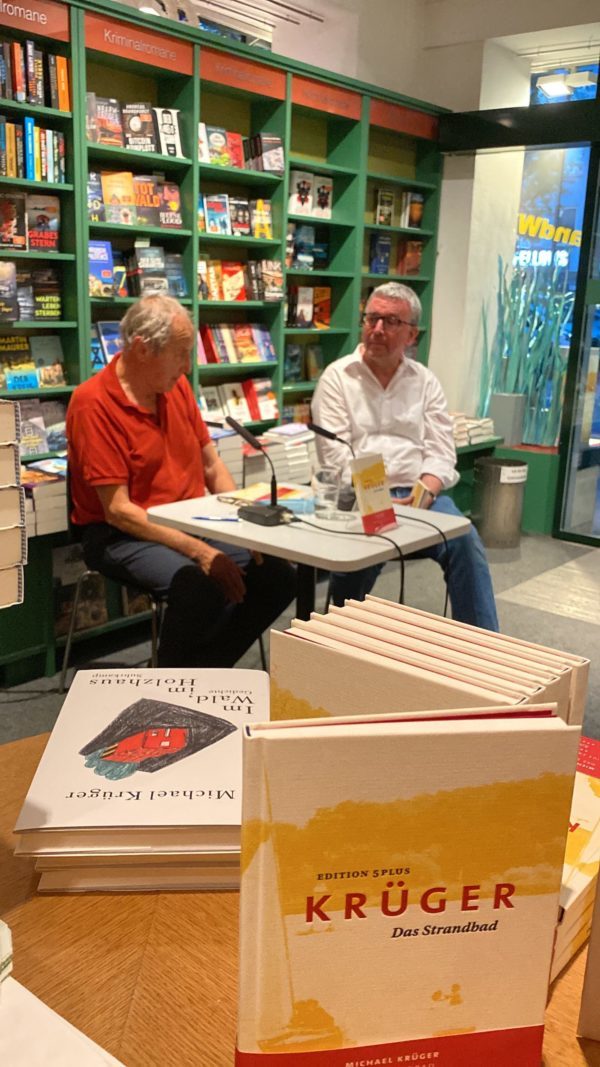 Ende Mai las er bei Dombrowsky in Regensburg, vor drei Wochen bei Felix Jud in Hamburg und in der vergangenen Woche bei Lehmkuhl in München: Nach zwei Jahren strenger Quarantäne in einem Holzhaus am Starnberger See ist Michael Krüger in den Buchhandlungen der 5plus-Gruppe* unterwegs und stellt seine jüngste Publikation „Am Strandbad – Szenen einer Kindheit“ vor.