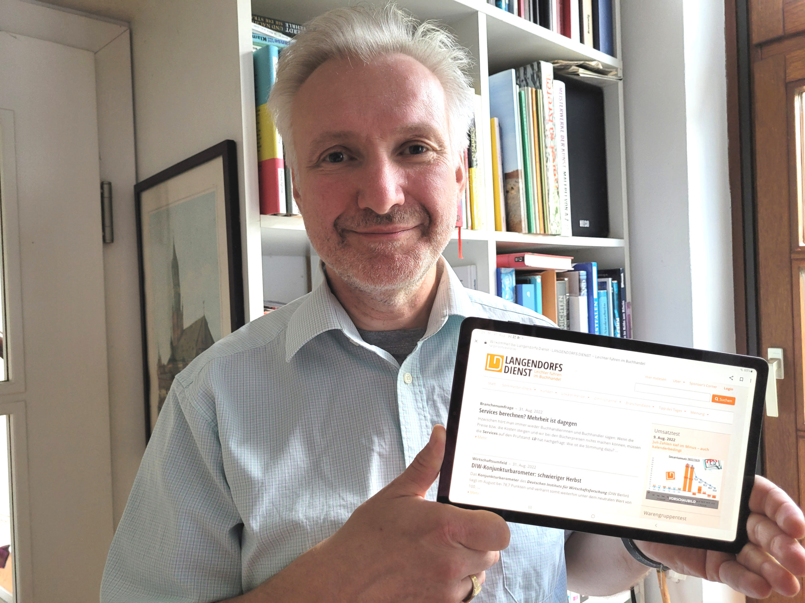 Lieber Matthias, ich wünsche Dir und Langendorfs Dienst, dass ihr dem Buchhandel noch viele Jahre mit kurzen und wichtigen Informationen versorgt und uns beiden, dass wir uns bald mal wieder gut versorgt mit alkoholischen Getränken zu später Stunde an der Bar bei einem buchhändlerischen Treffen über die großen Themen des Buchhandels austauschen können.“