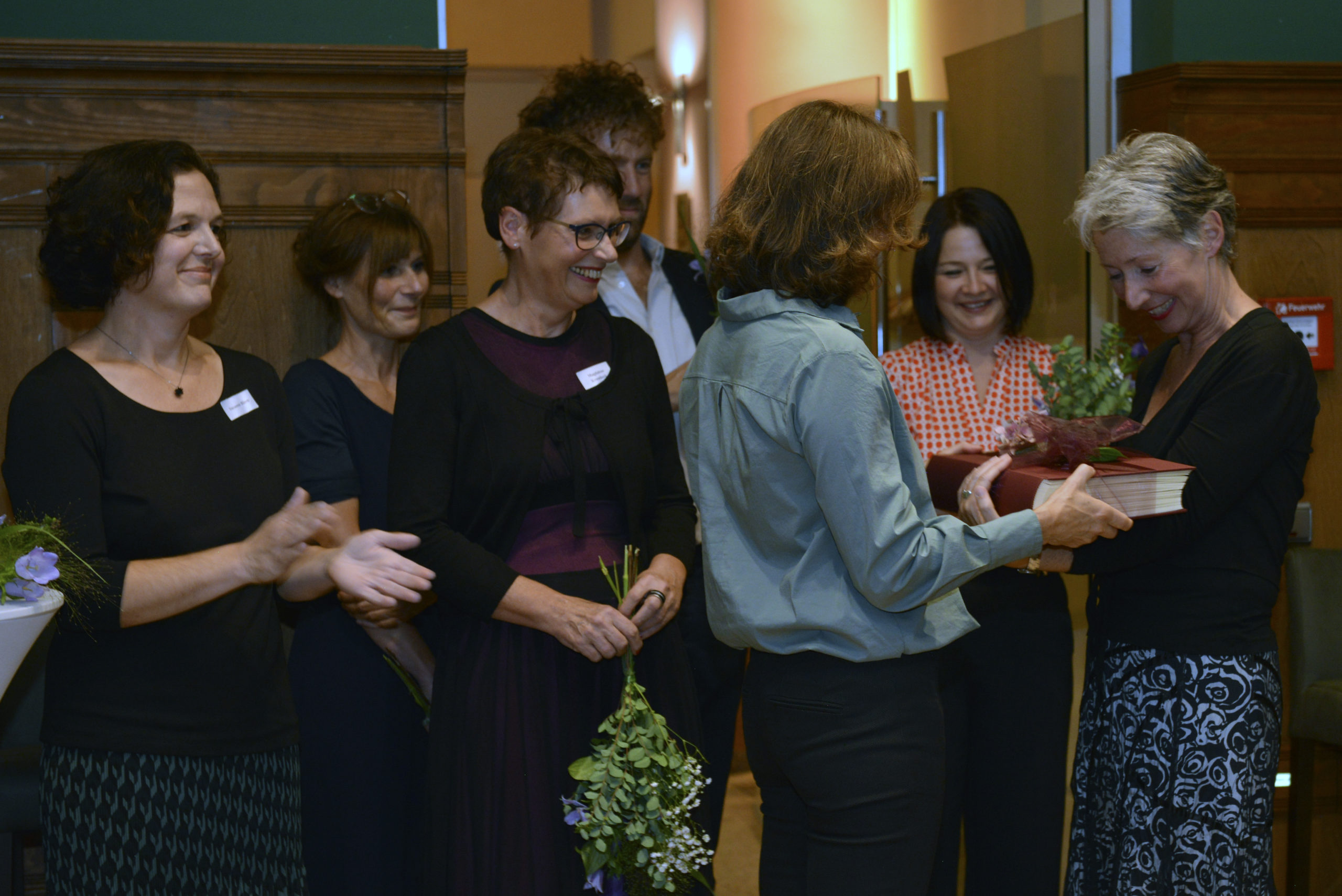 Sichtlich gerührt war Monika Bilstein nicht nur von den vielen guten Worten, sondern auch vom Überraschungsgeschenk, einem dicken Buch, für das ihr Team persönliche Botschaften der Wegbegleiter*innen einer langen Karriere in Texten und Bildern gesammelt hatte. Die Verlegerin zeigte sich in ihrer Ansprache dankbar für all die Begegnungen ihres Berufsleben, die auch ihr privates Leben bereichert hätten. Viele hätten sie gefragt, was sie denn bloß mache, wenn sie nicht mehr arbeite – u.a. wolle sie wieder Klavier spielen und Unterricht dafür nehmen. Und sie freue sich darauf, den Wechsel der Jahreszeiten künftig bewusster wahrzunehmen, anstatt sich nach der Hektik zwischen Leipziger Buchmesse, Vertreter*innenkonferenz und Bologna beim Anblick eines ergrünten Baumes zu fragen: „Wie konnte das denn nun so plötzlich passieren?“ Lange wurde am Freitagabend noch gefeiert und getanzt.