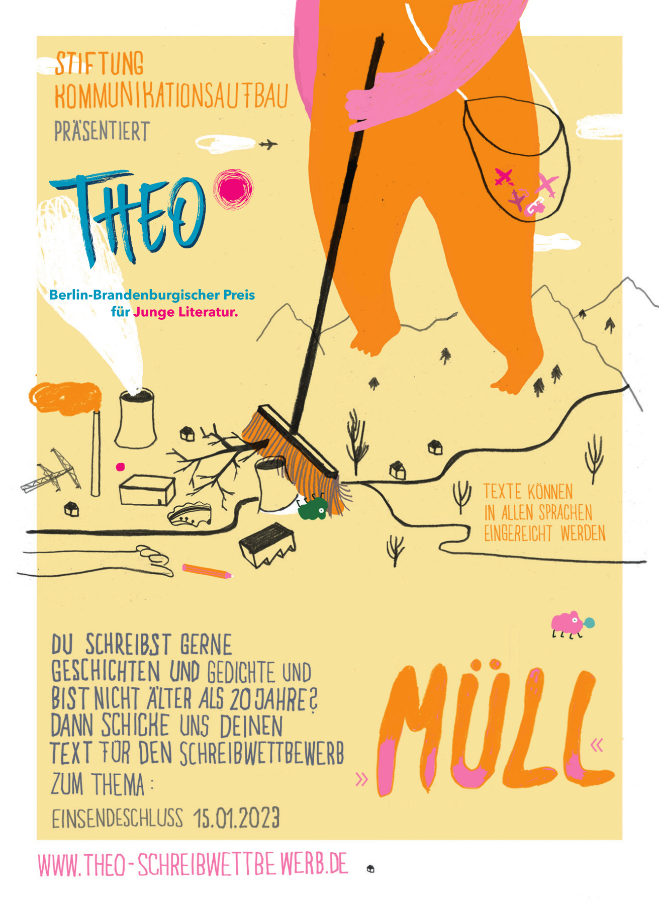 Junge Schreibtalente aus aller Welt sind ab heute dazu aufgerufen, Gedichte und Kurzgeschichten für den überregionalen Schreibwettbewerb THEO – Berlin-Brandenburgischer Preis für Junge Literatur 2022/23 einzureichen.