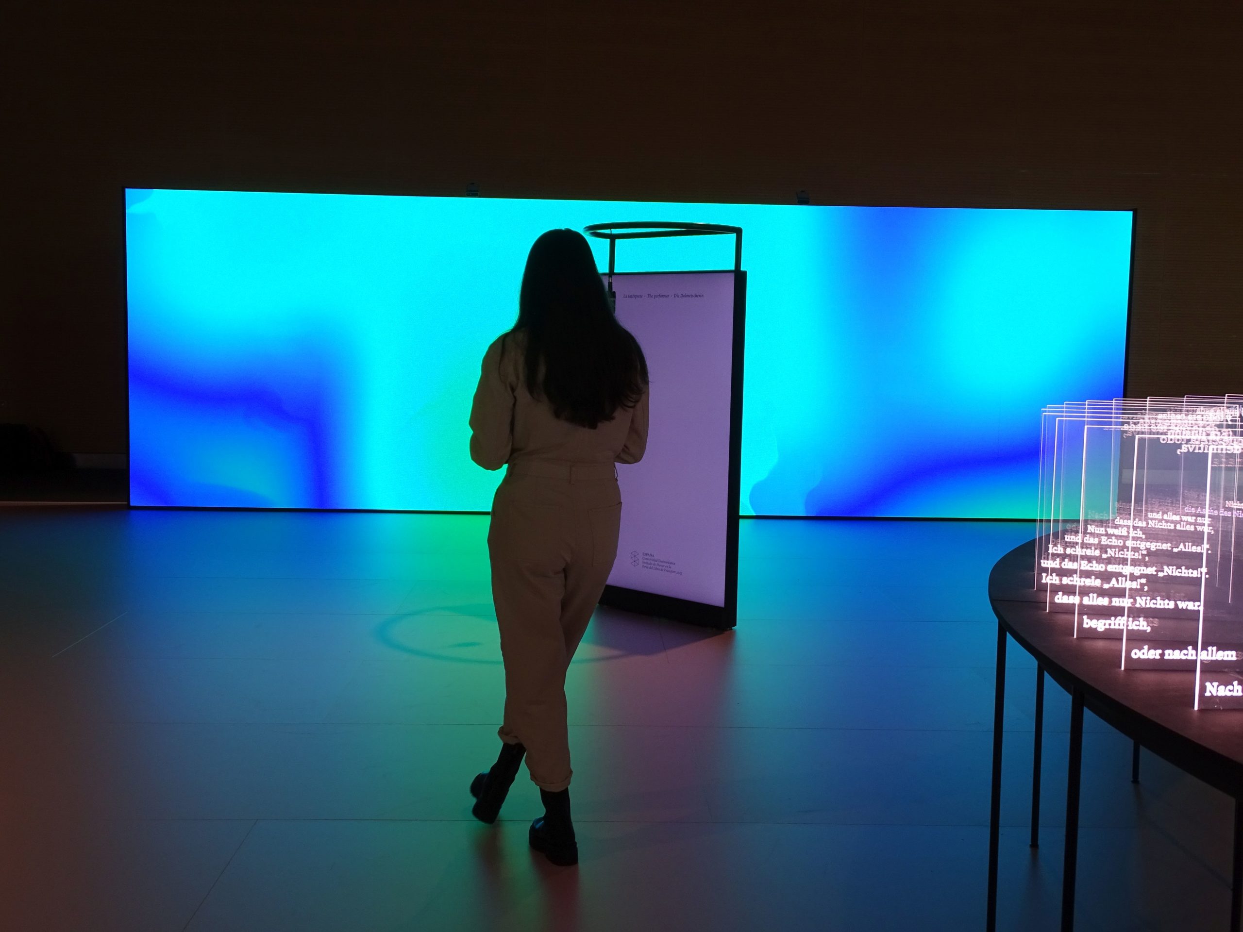 Der Overall und die Stiefel sind nur Zufall; ich meine die LED-Wand.