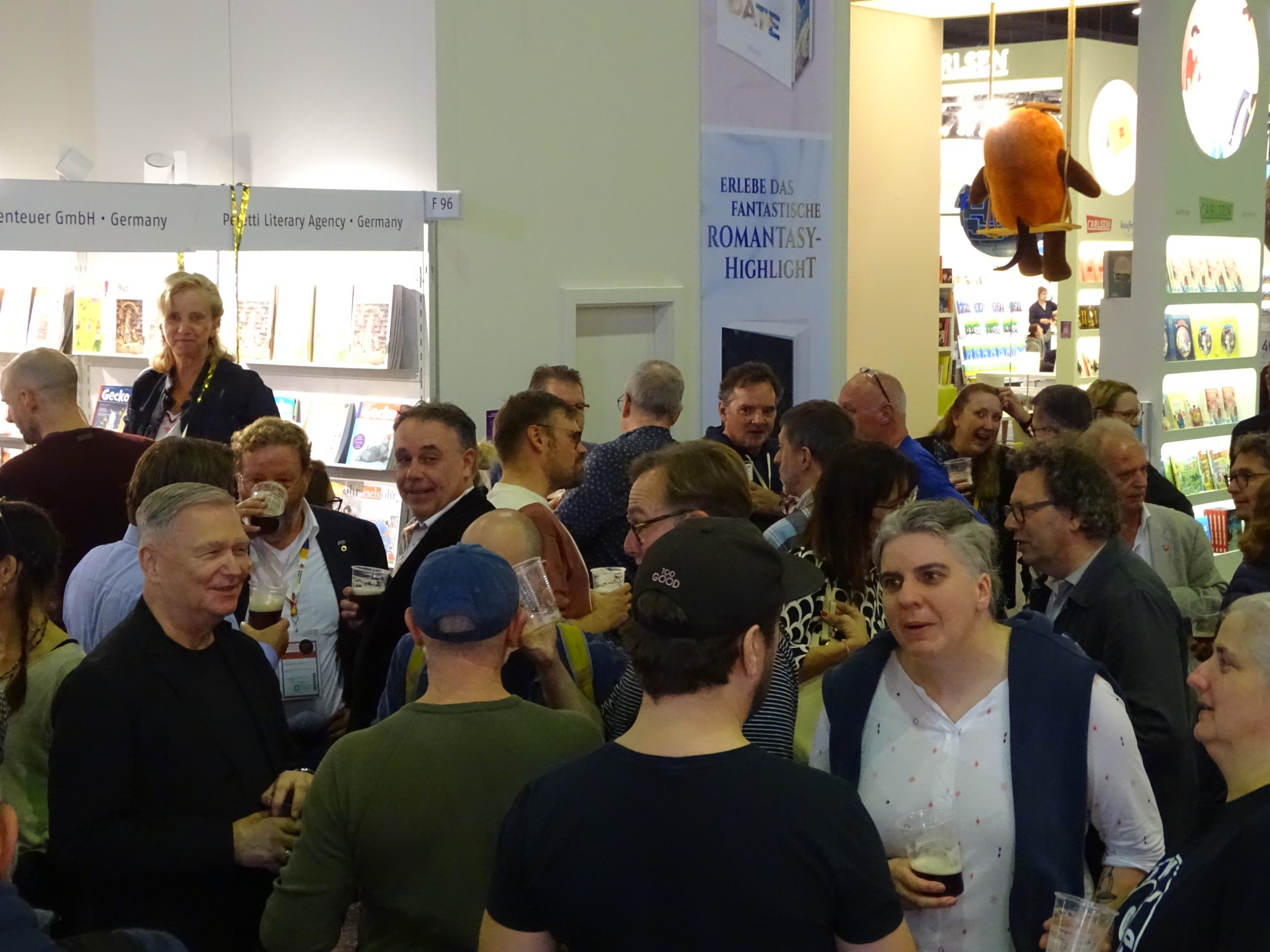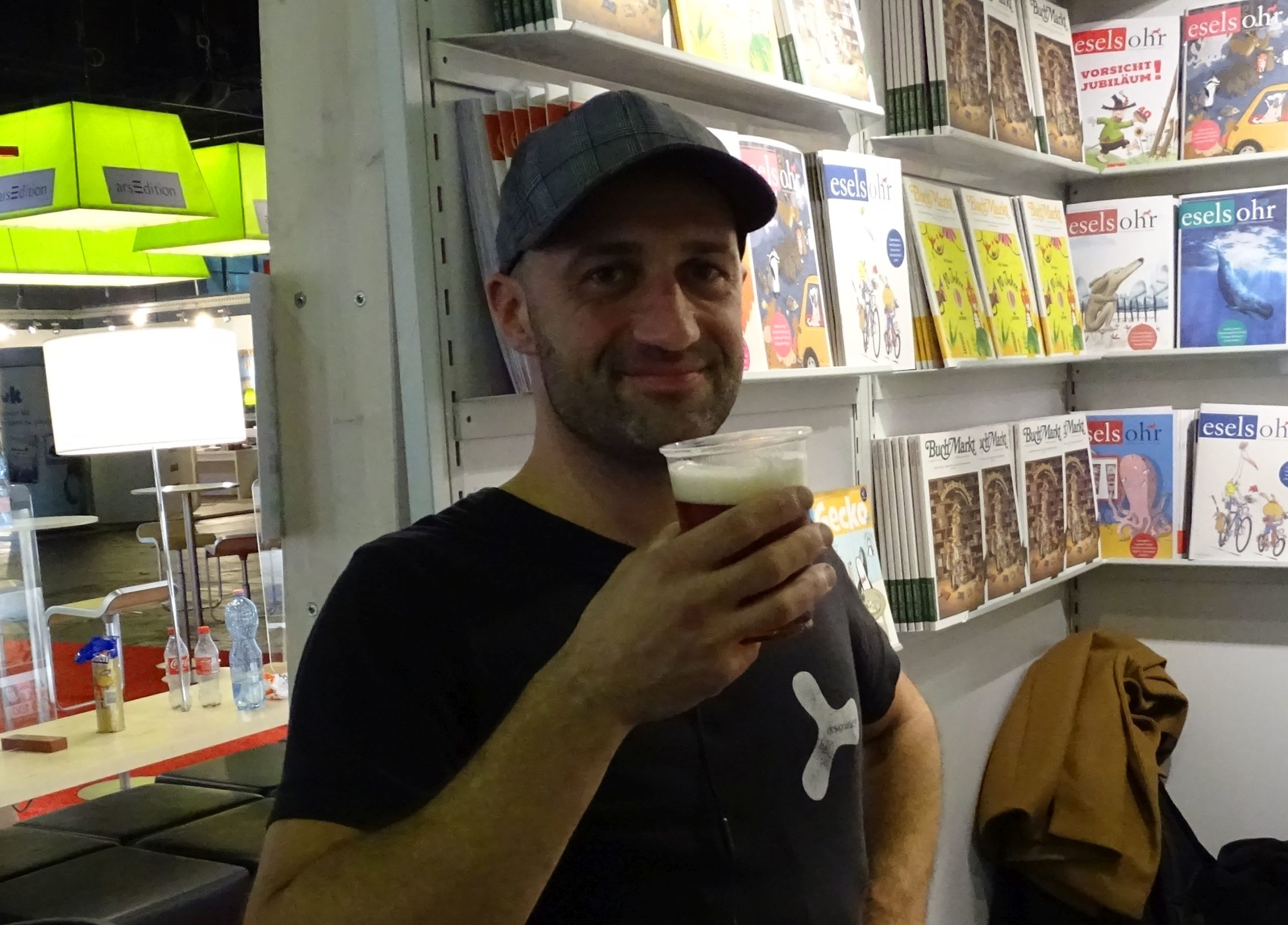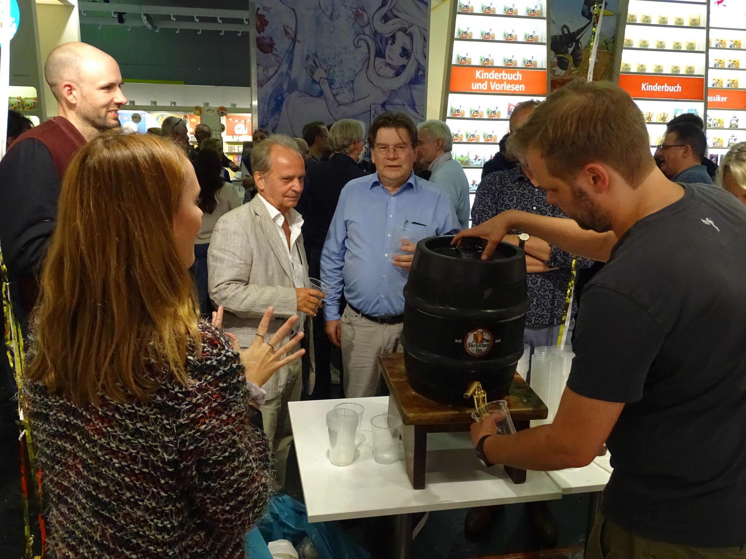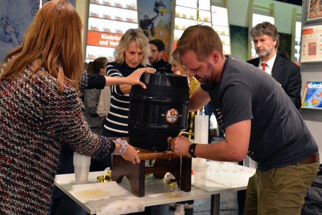Zu den schönsten Traditionen dieser Messe gehört, dass meine Redaktion am Ende des Aufbautages immer Fassbier spendiert an alle, die davon wissen oder um 17.00 Uhr in der Nähe sind.