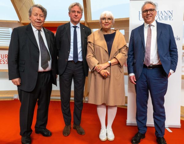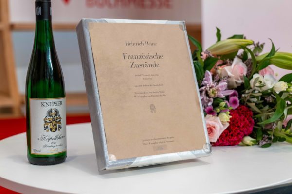 Gestern Nachmittag verlieh der HOFFMANN UND CAMPE Verlag auf der Frankfurter Buchmesse den Julius-Campe-Preis 2022. Der Preis gilt „Persönlichkeiten und Institutionen, die sich auf herausragende Weise literaturkritische und literaturvermittelnde Verdienste erworben haben“. Die Auszeichnung ist mit 99 Flaschen edlen Weins und des bei HOFFMANN UND CAMPE erschienenen Faksimiles der »Französischen Zustände« Heinrich Heines dotiert.