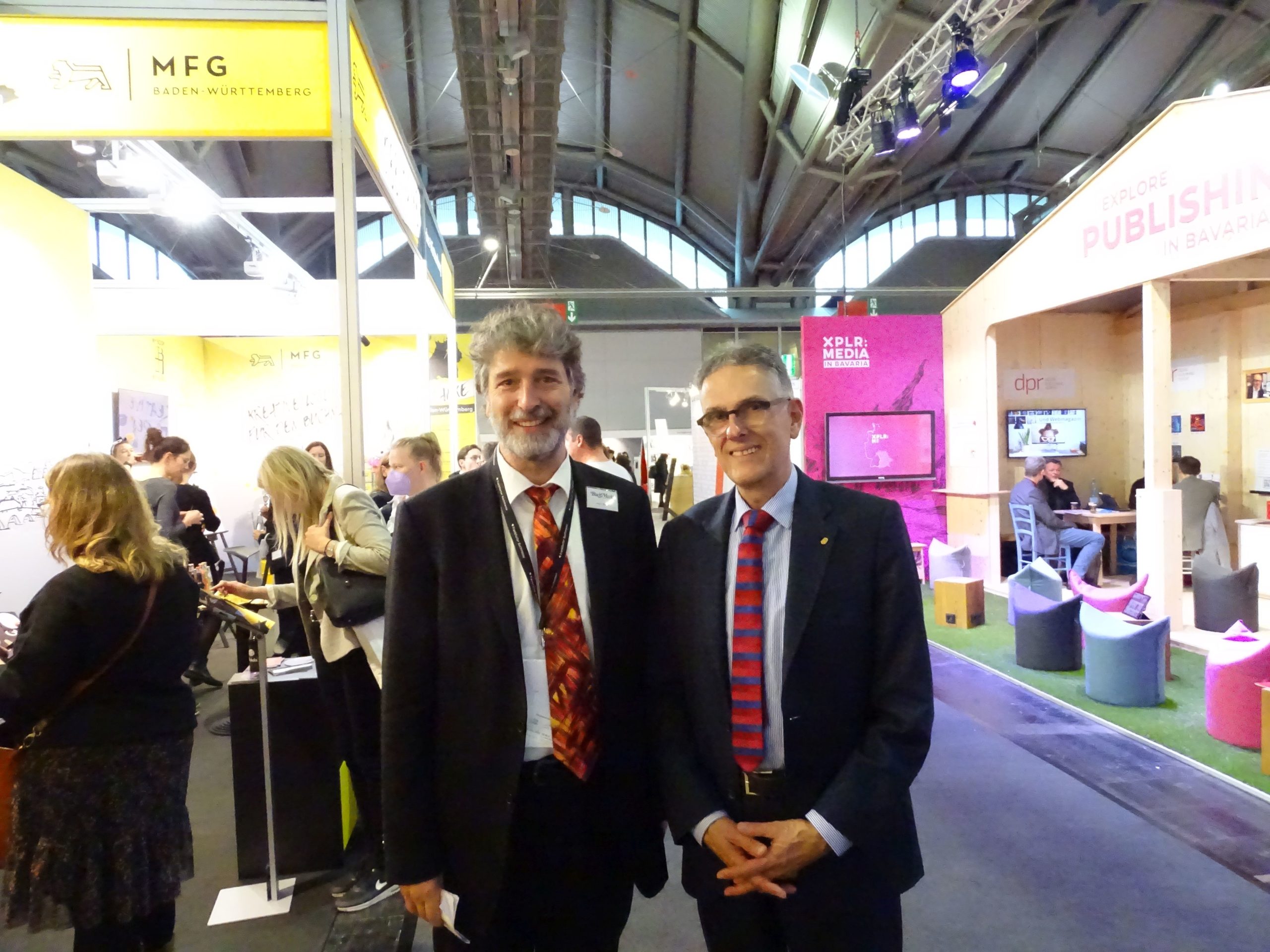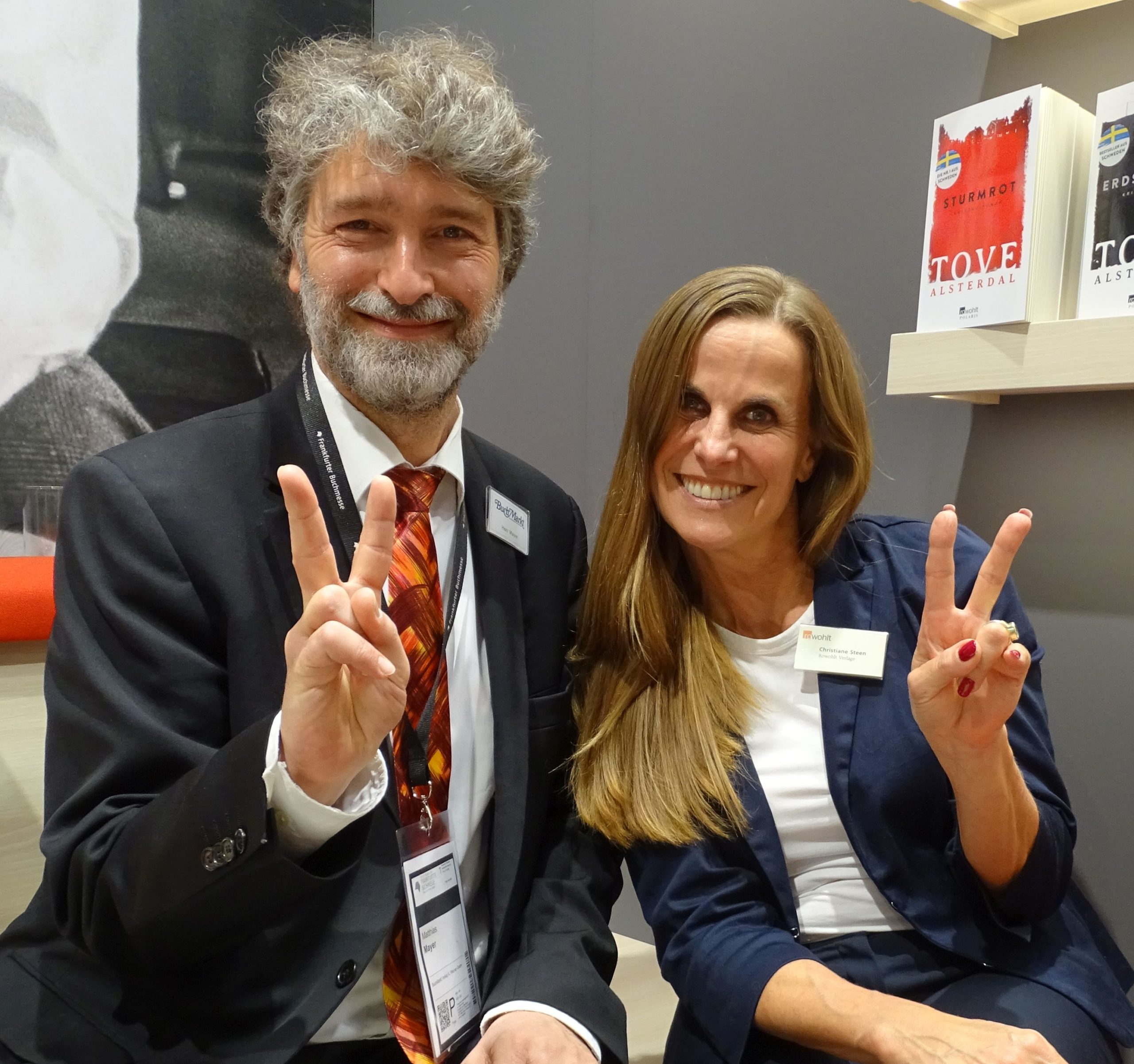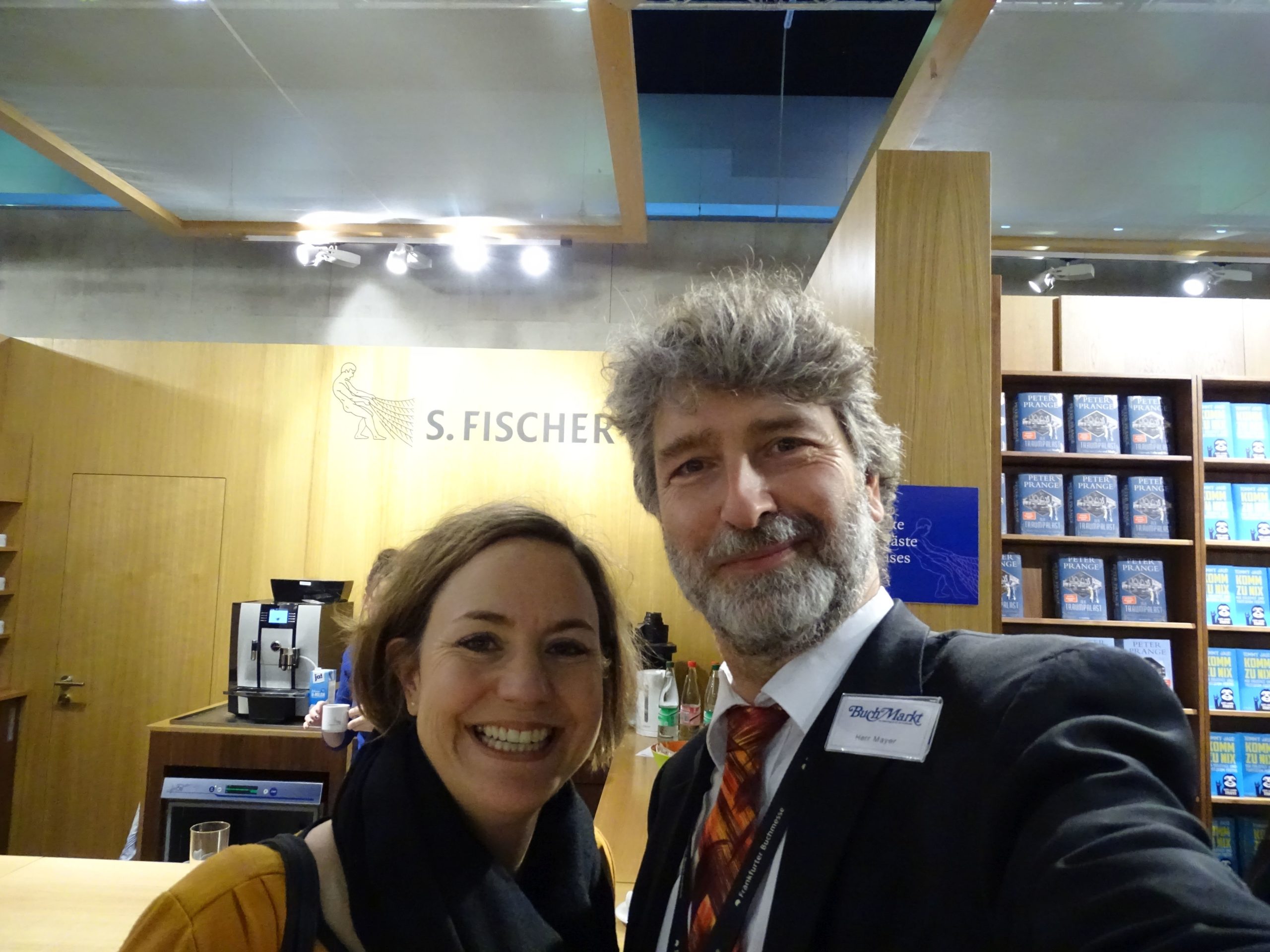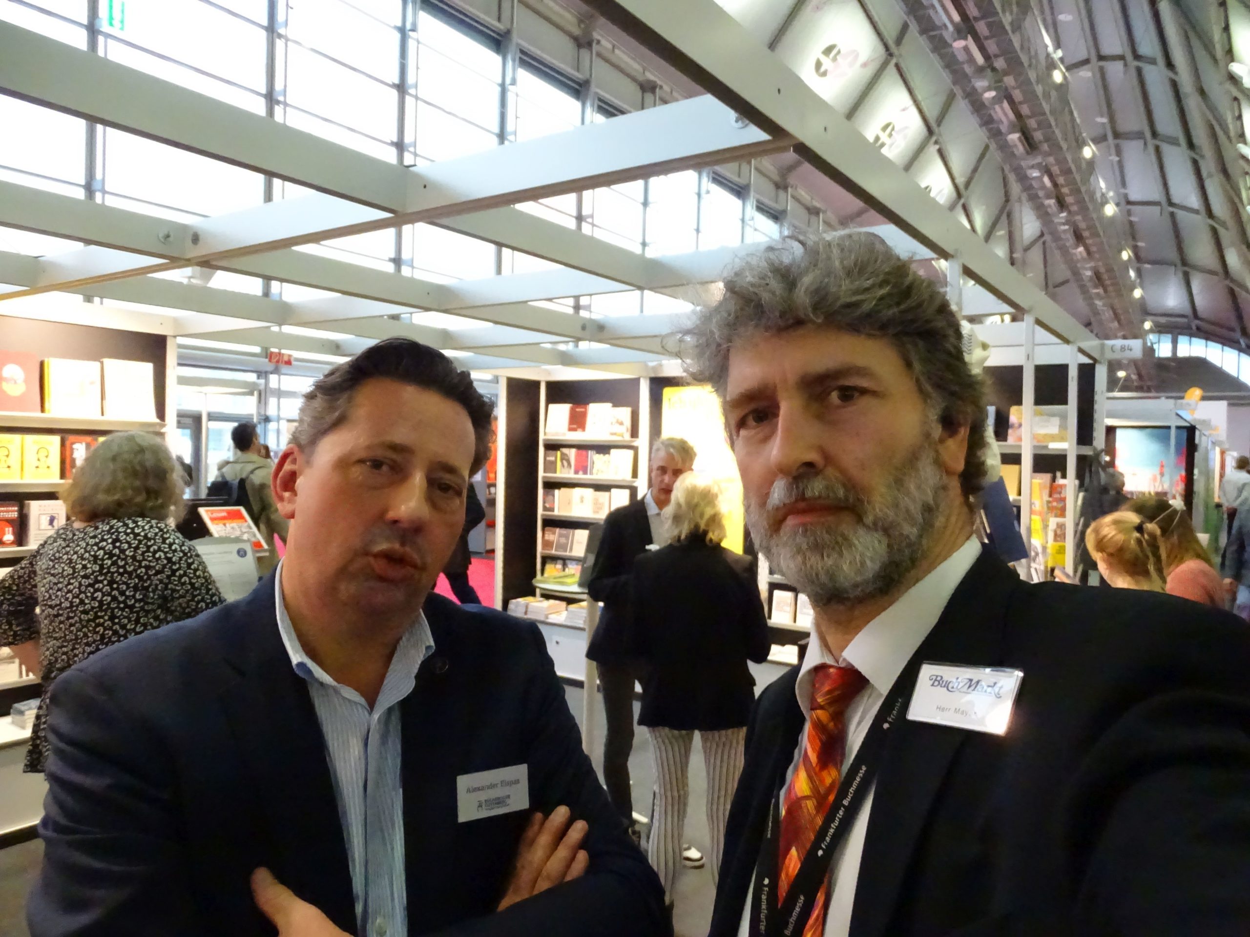 Am Stand der Büchergilde ist ja stets Holger Ehling zu befürchten, aber immerhin treffe ich meinen Vertriebsmann Silvio Mohr-Schaaff und seinen Chef, den im Handel wohlgelittenen Querkopf Alexander Elspas.