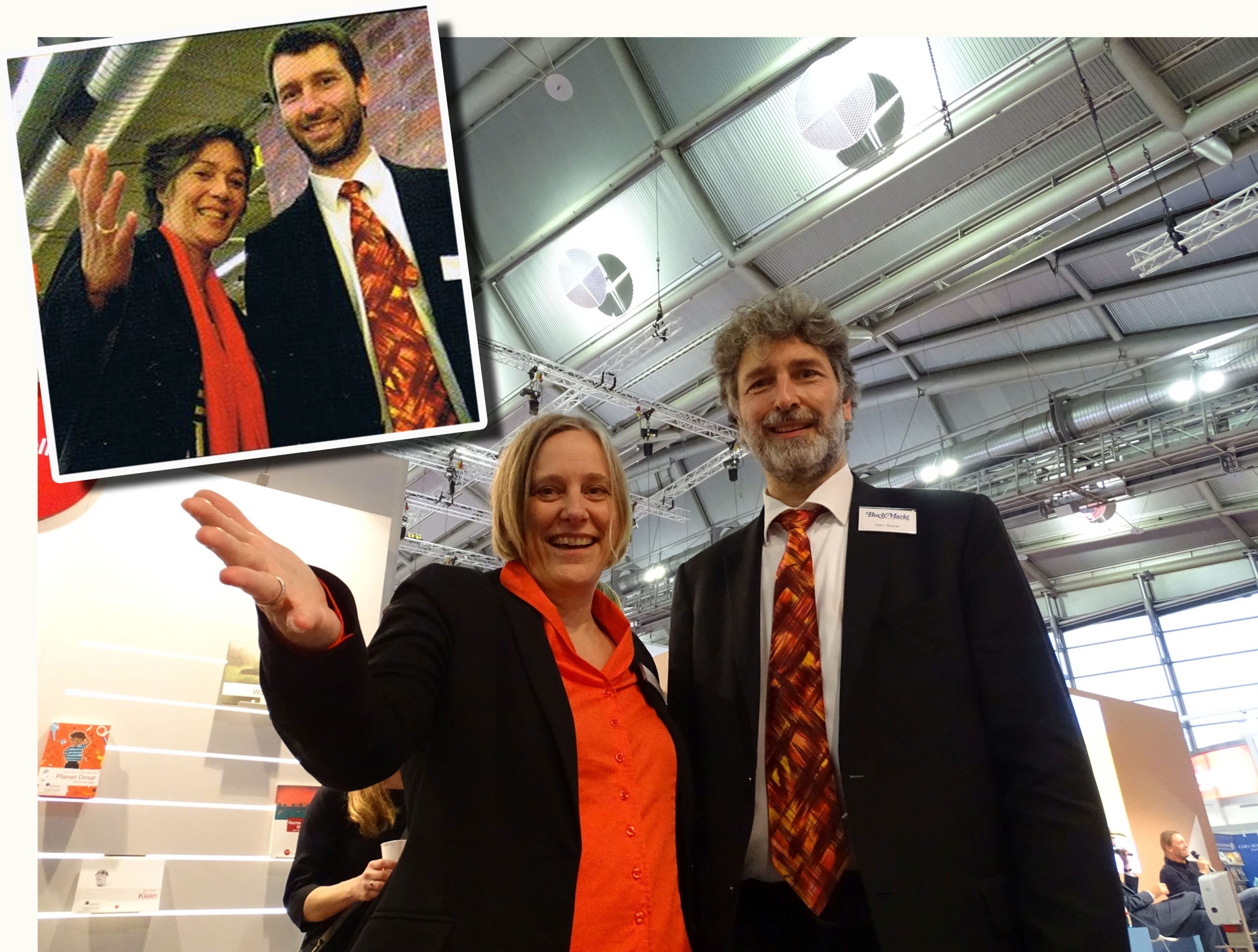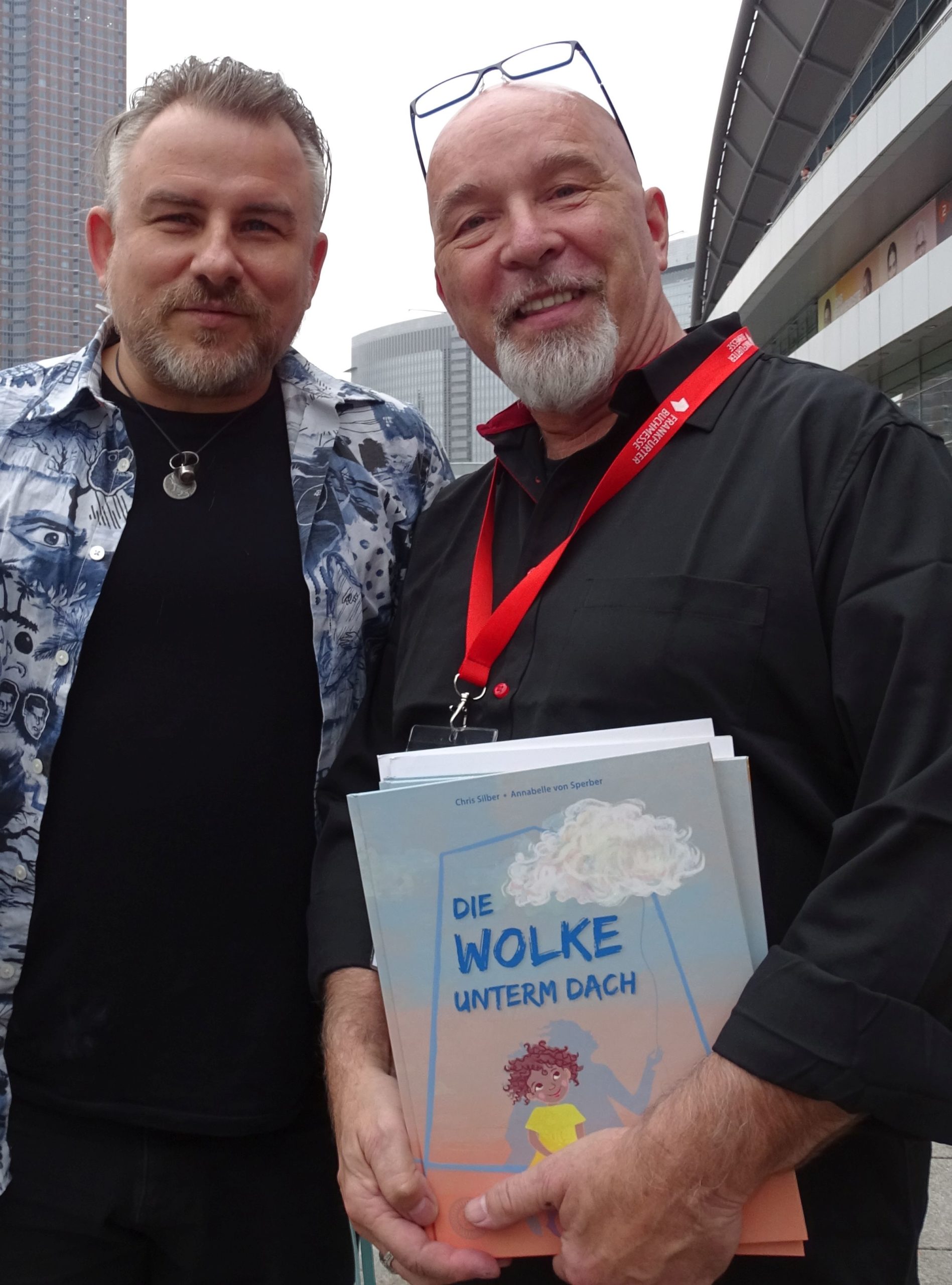 Harald Kiesel (rechts) und sein 360°-Verlag gehören immer wieder zu meinen Sortiments-Lieblingen. Hier stellt er mir Chris Silber vor. Silber hat vor neun Jahren seine Frau an den Krebs verloren, und er hat ein Buch gemacht, das ihre gemeinsame Tochter trösten sollte.