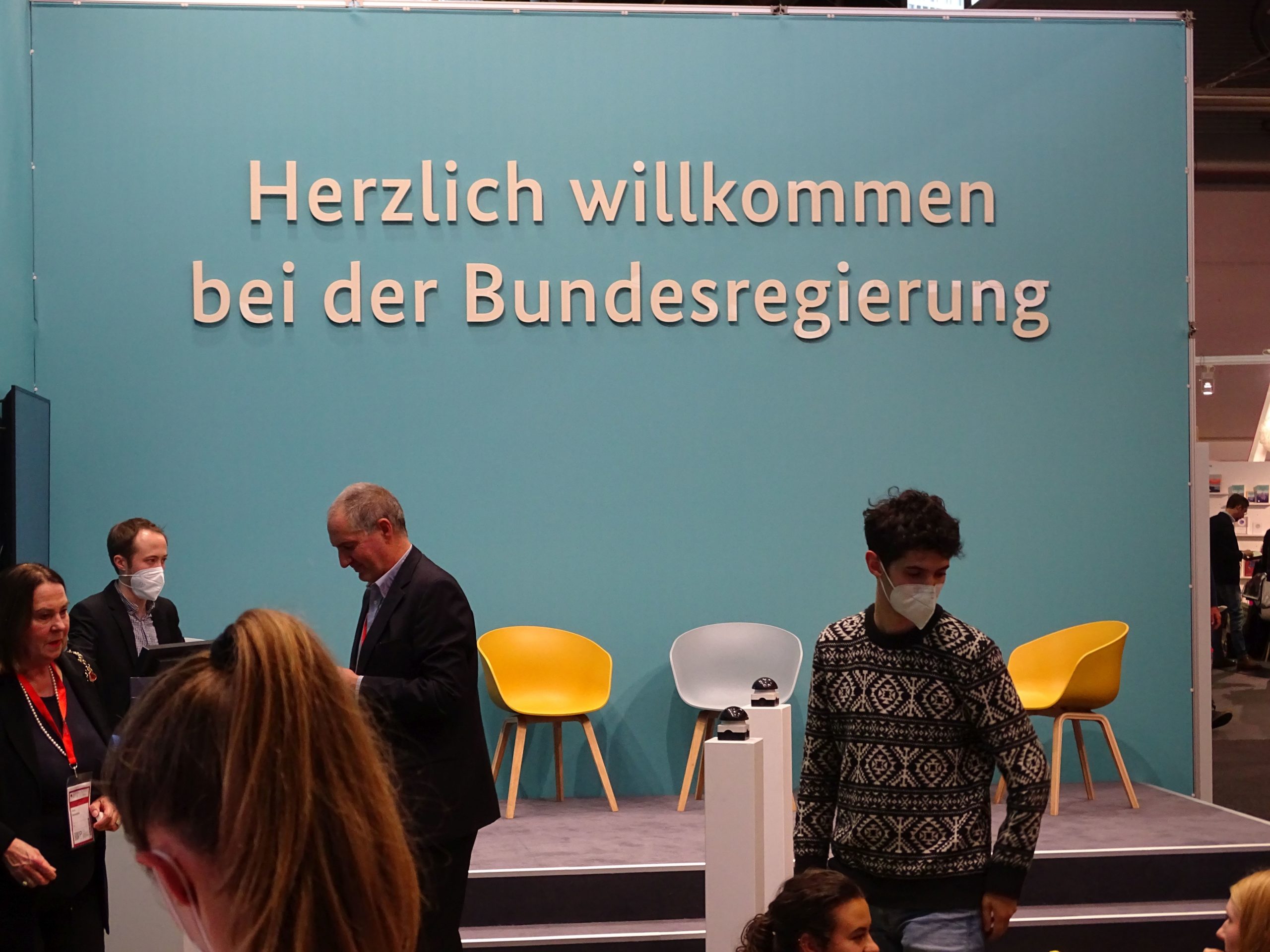 Und Fragen überdenken wie diese: Kriegt man am Stand der Bundesregierung auch Giveaways?