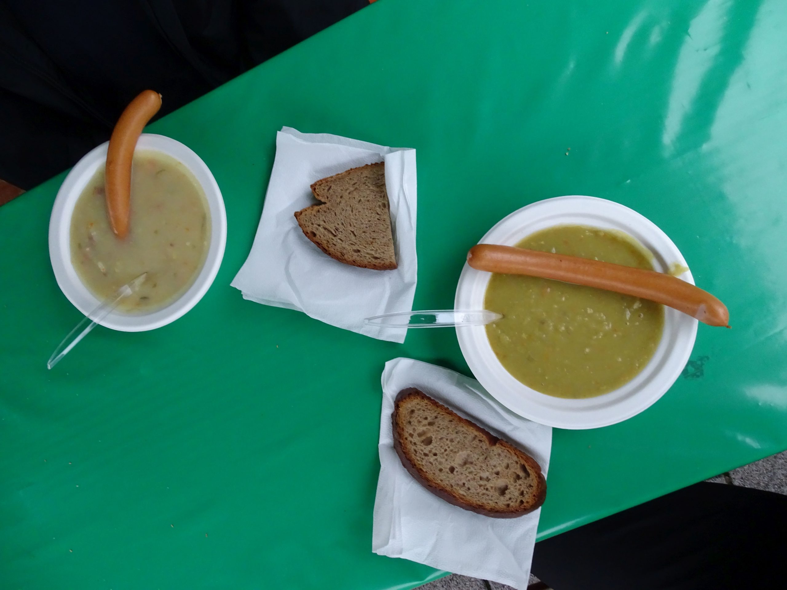 Apropos Ferment: Denken Sie nicht, ich äße weniger, nur weil ich es nicht erwähne. Bei all der Auswahl an Foodtruck-Frittationen hatte ich heute beispielsweise Lust auf eine schöne, traditionelle, einfache Suppe, ein Frankfurter Würstchen und ein gutes Stück Brot.