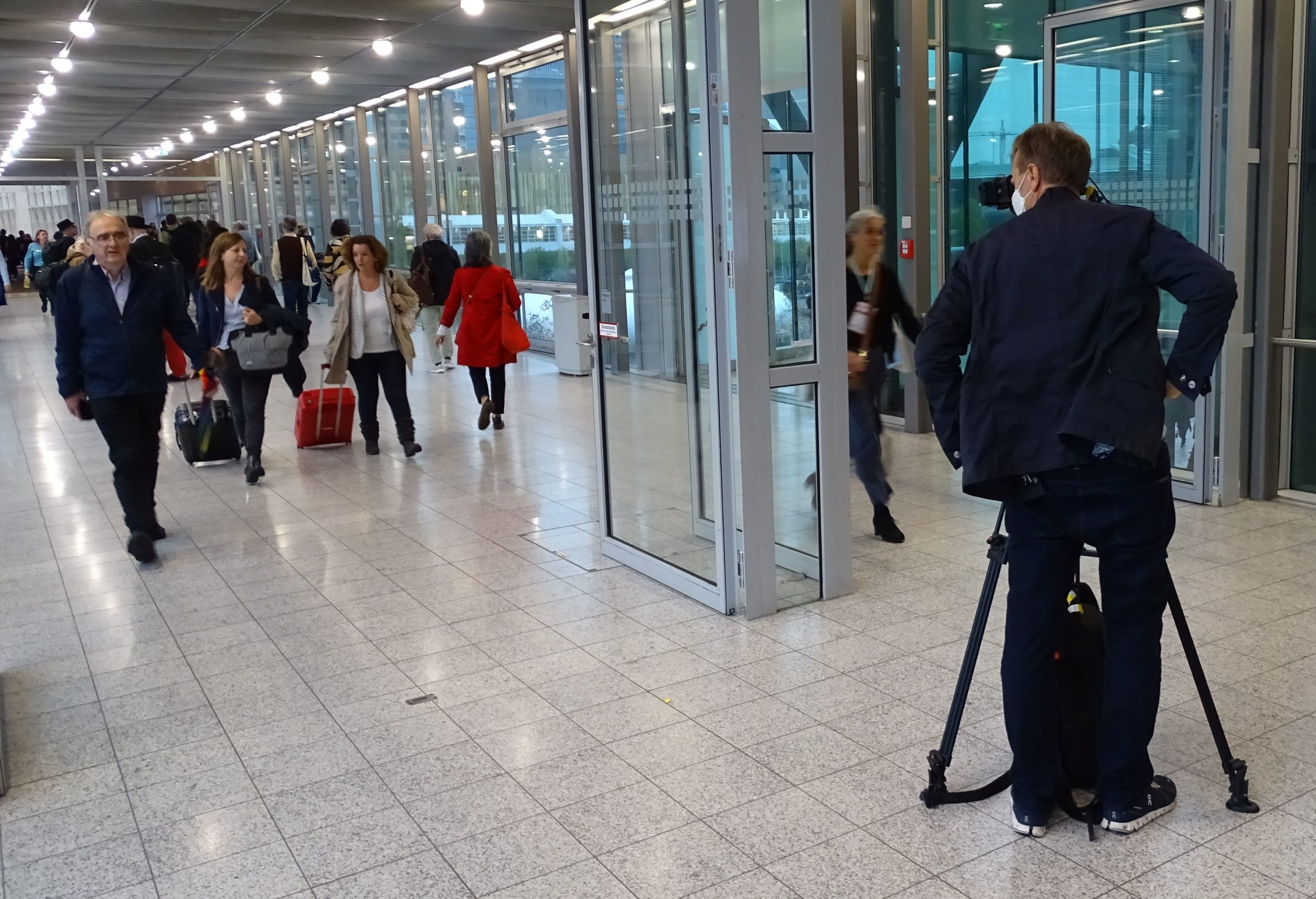 Auf dem Rausweg sehe ich einen 2nd-Unit-Kameramann, der eine typische 2nd-Unit-Aufgabe zu erledigen hat: Besucherströme beim Gehen filmen, damit die First Unit gute Abschlussbilder kriegt.