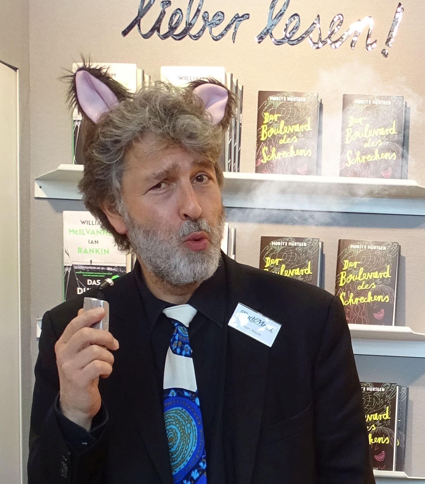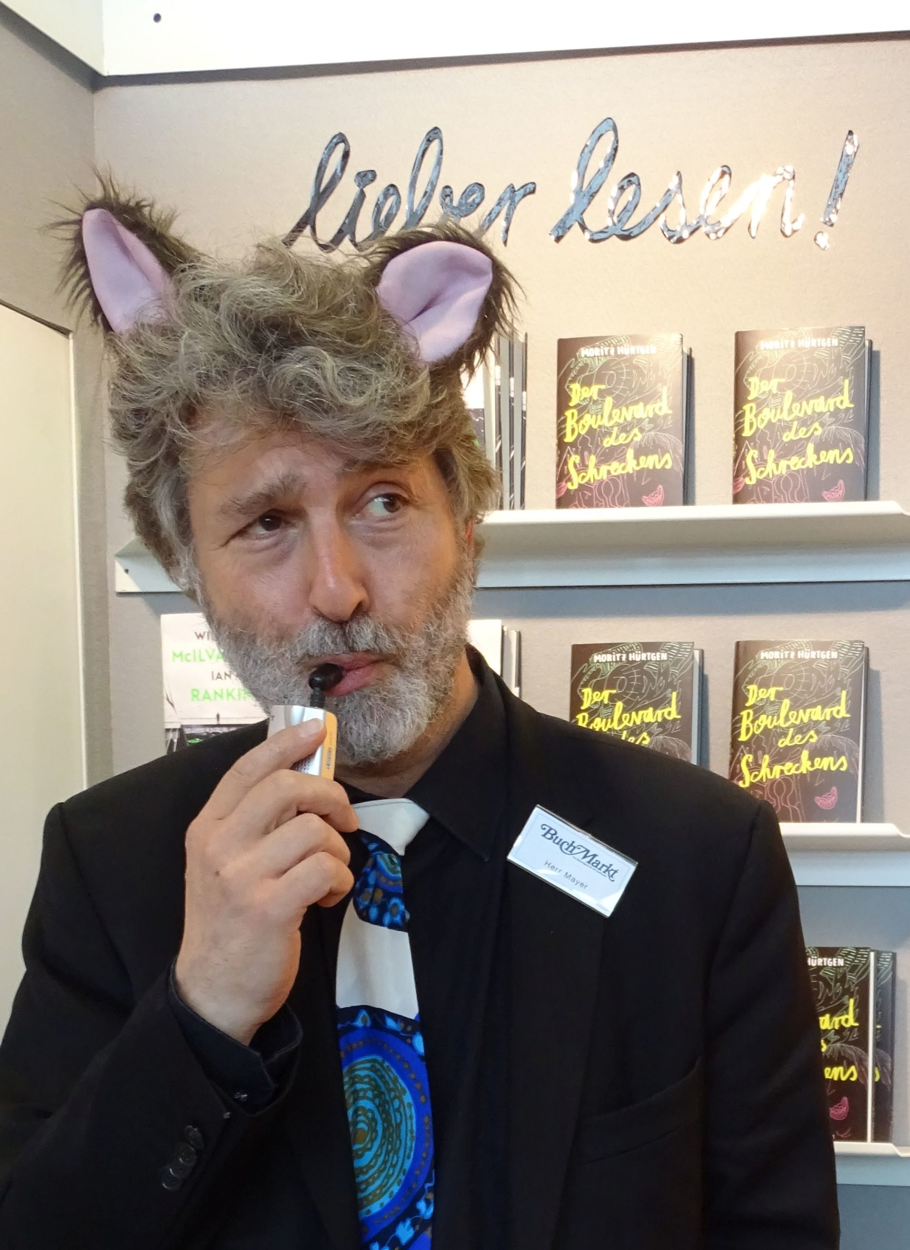 Freundlicherweise und weil das sein Metier ist, hat Herr Hürtgen sich bereit erklärt, auch für mein abgesagtes Jens-Spahn-Interview einzuspringen. Spahns Buch Wir müssen einander viel verzeihen ist im Mosaik-Verlag erschienen, der auf dieser Messe nicht zufällig ein Stockwerk unter Kunstmann residiert.