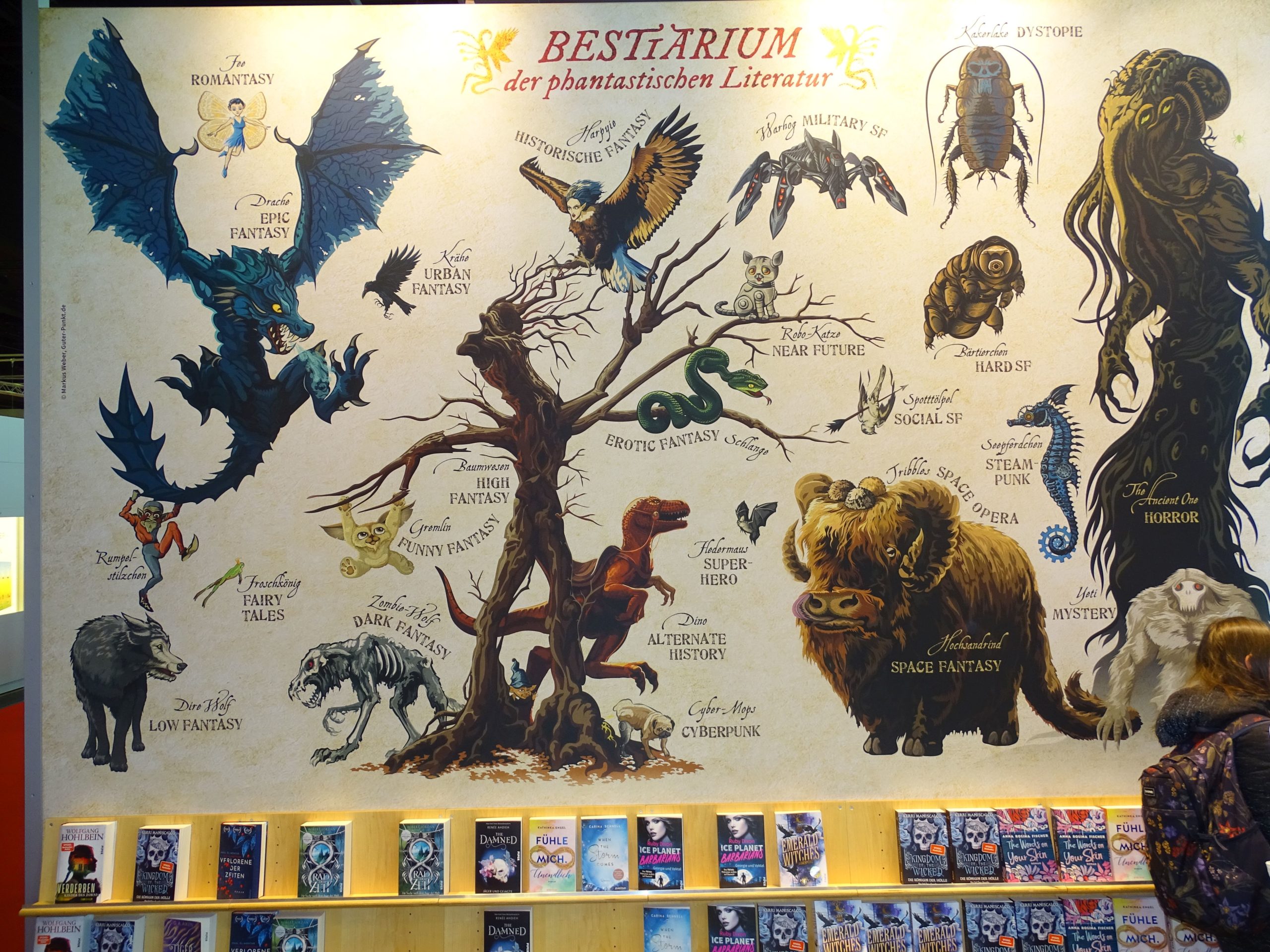 Bei Piper entschloss man sich zu einem großen Wandplakat mit einem Bestiarium der phantastischen Literatur. Das lag zwar keinem Buch zugrunde, sollte aber auf die Genre-Reihen im Verlag hinweisen.