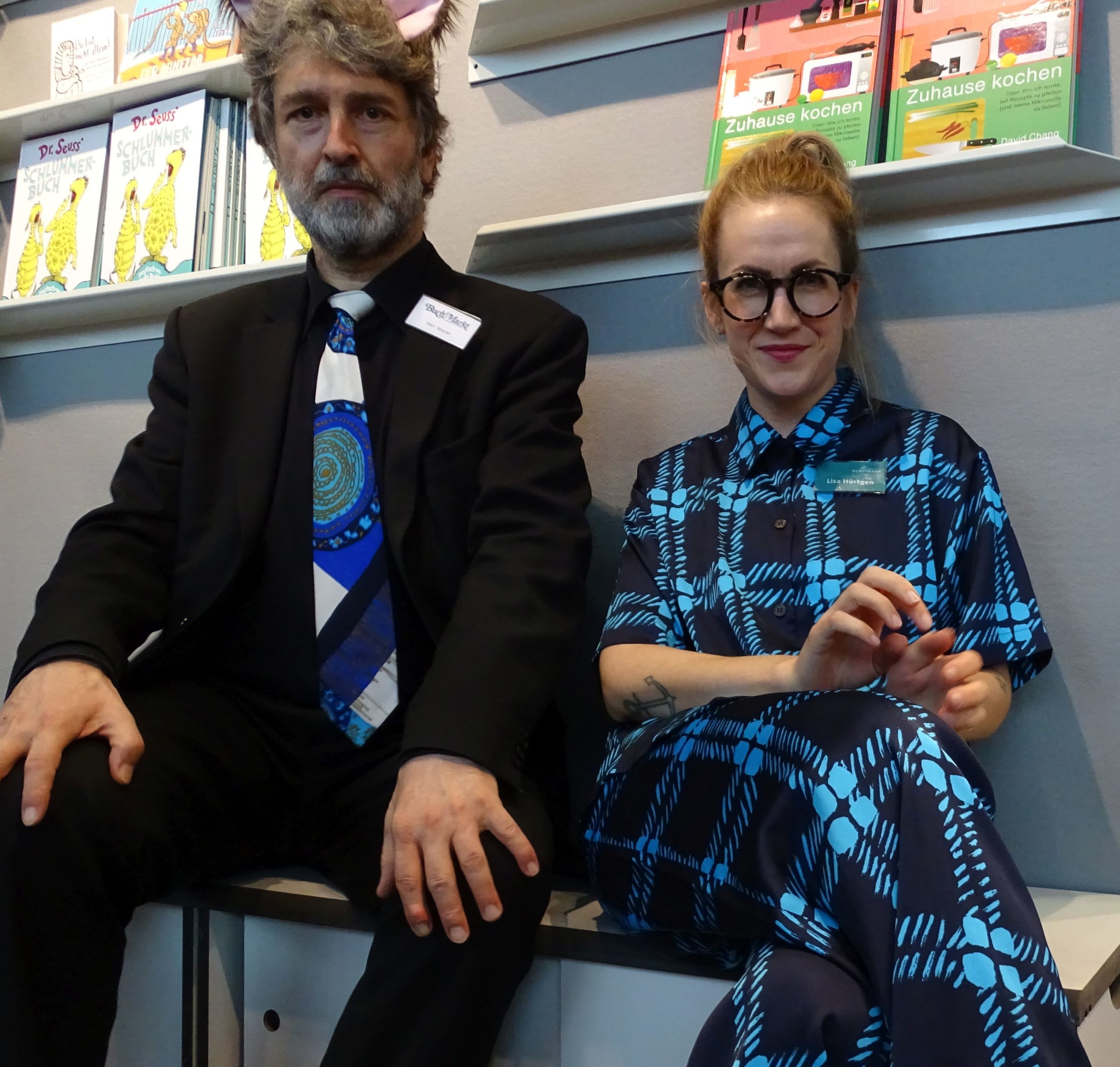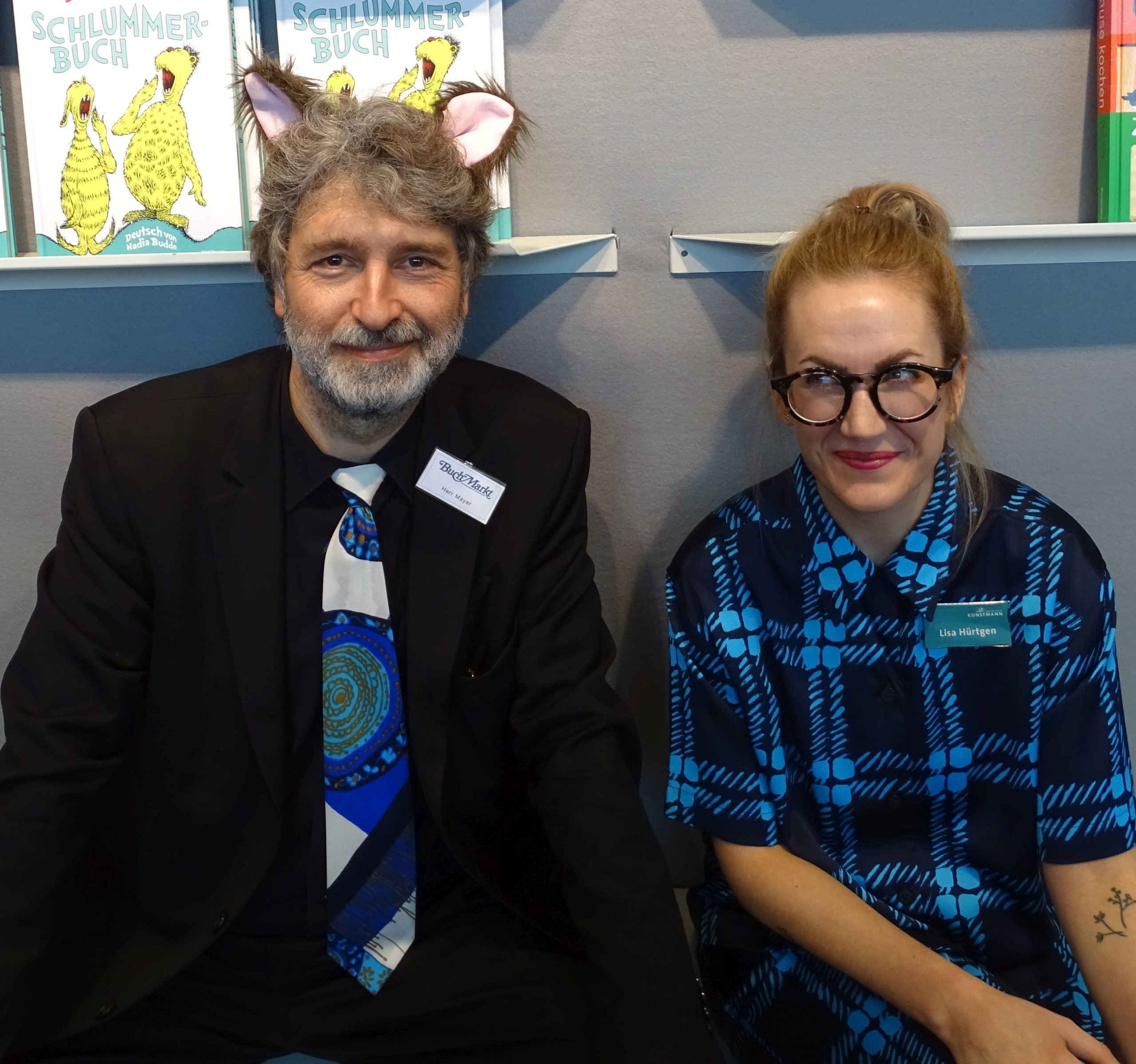 Eine Besucherin*innen*in nennt uns sogar „das schönste gemeinsame Stand-Outfit“. Dabei arbeite ich gar nicht bei Kunstmann. Na gut, eine Presserefrerentin im Grunde ja auch nicht. Und ich muss zugeben: Wir sind wirklich todschick. Meine Krawatte und Lisas Outfit todschickeln um die Wette.