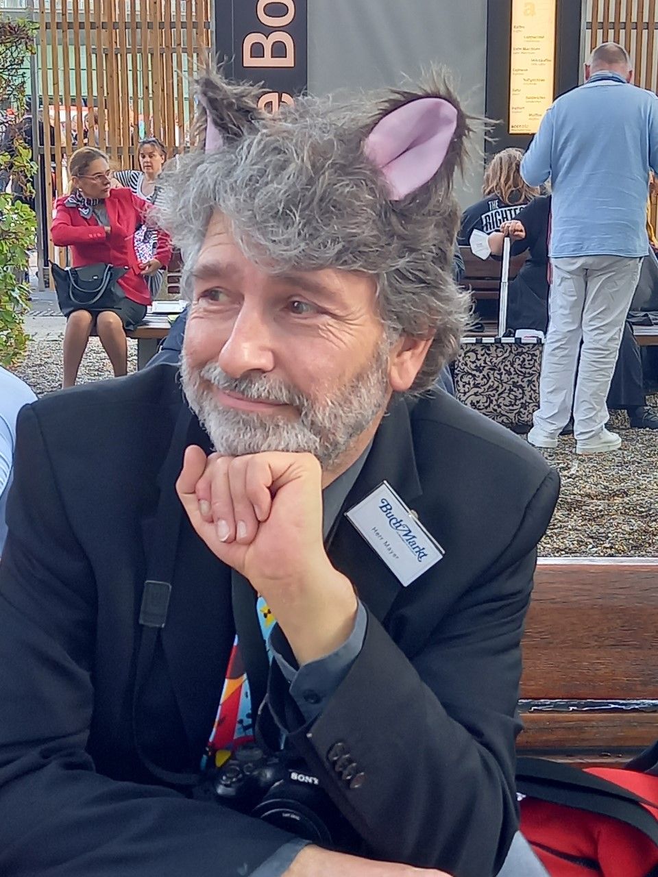 Meine täglich misslingenden Schnappschüsse mit Mirjam Mustonen bei Kiepenheuer sind ein eigenes Narrativ im diesjährigen Messe-Mayer geworden, das mich als Fotografenverlierer darstellt und sie als resting Bitch, dabei ist Mustonen ein Engel.