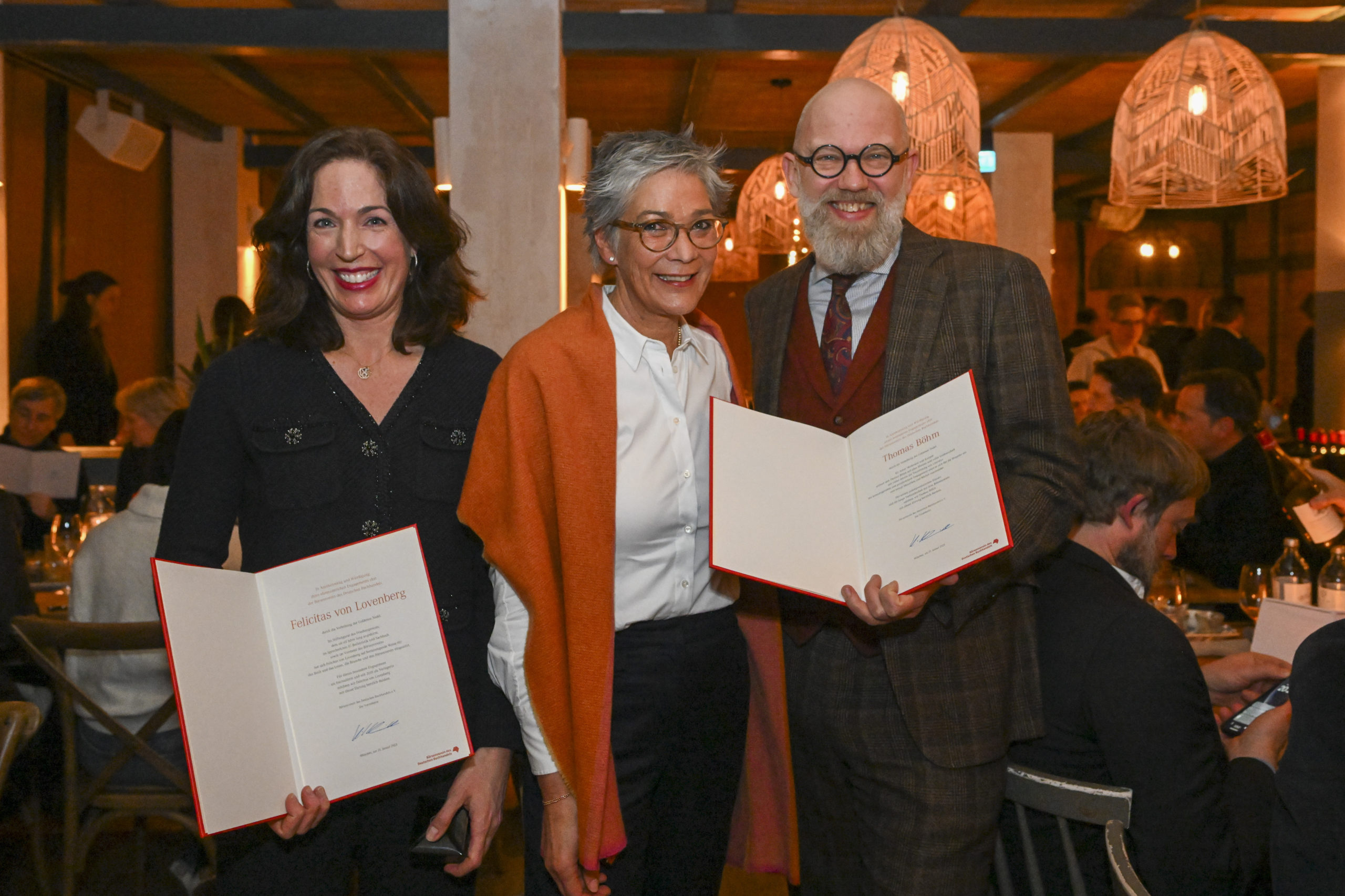 „Der Börsenverein ehrt heute zwei Menschen, die Außergewöhnliches für unsere Branche und den Verband geleistet haben – mit Leidenschaft und herausragendem Einsatz für das Buch, das Lesen und die Literaturvermittlung. Gemeinsam ist beiden eine explizite Buch-Begeisterung, ein einnehmender, sprühender Enthusiasmus für die Literatur, der die Freude am Lesen auf wunderbare Weise auf andere überspringen lässt. Felicitas von Lovenberg hat sich schon lange bevor sie Verlegerin wurde – und dann sofort wichtige Ehrenämter im Börsenverein übernahm – unglaublich für unsere Branche engagiert. Der Fokus von Thomas Böhms Arbeit liegt immer auf der Literatur und dem, was die Literatur für uns tun kann. Wie sie uns stärken, erinnern, begeistern und zusammenbringen kann“, sagte Schmidt-Friderichs, Vorsteherin des Börsenvereins.