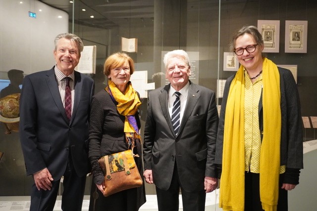 Antonia Grunenberg stellte gestern Abend im Deutschen Buch- und Schriftmuseum in Leipzig im Gespräch mit Altbundespräsident Joachim Gauck ihr Buch Demokratie als Versprechen (Europa Verlag) vor. Neben den beiden Grunenberg (mit Handtasche) und (rechts daneben) Joachim Gauck – sind Michael Fernau (Direktor der DNB Leipzig) und Dr. Stephanie Jacobs (Leiterin des Deutschen Buch- und Schriftmuseums) im Bild zu sehen.