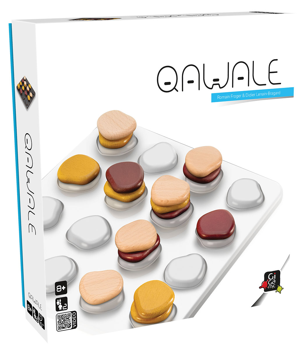 Elegant und taktisch zugleich, findet Qawale seine Inspiration in Kieselsteinhaufen, die man entlang der Wege findet. Beide Spieler erhalten acht Steine je einer Farbe. Die dritte Farbe ist neutral. Wer an der Reihe ist, legt einen Stein auf einen Stapel seiner Wahl und verschiebt ihn. Beim Verschieben eines Stapels müsst ihr auf jedem überquerten Feld einen Stein liegen lassen. Wer als Erstes vier Kieselsteine der eigenen Farbe von oben betrachtet auf dem Brett aneinanderreiht, gewinnt dieses Spiel, das durch eine grandiose Haptik des Materials besticht.