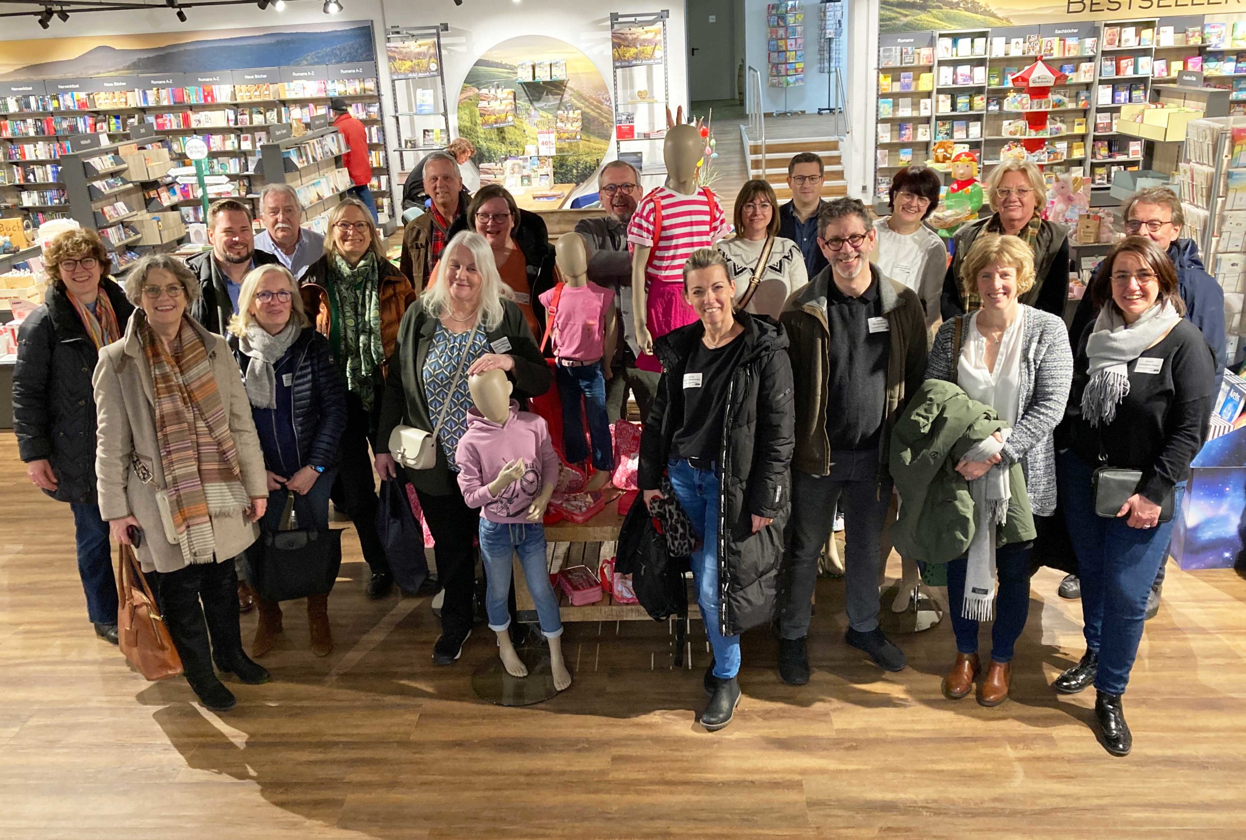 Jetzt konnte sich die Fachgruppe ein Bild machen von dem von Grund auf sanierten Gebäude. Alle waren sich einig: das inhabergeführte Kaufhaus und insbesondere die Buchhandlung laden die Kund*innen mit einer offenen, modernen und sehr freundlichen Atmosphäre zum Shoppen und Wohlfühlen geradezu ein und sind für die Einzelhandelslandschaft in Bad Neuenahr-Ahrweiler ein wichtiger Faktor. Moses ist „mehr als ein klassisches Kaufhaus“, so Patrick Küpper, Mitglied der Unternehmensleitung. „Moses ist eine Anlaufstelle für die Menschen, es ist ein Stückchen Heimat für das gesamte Ahrtal.“