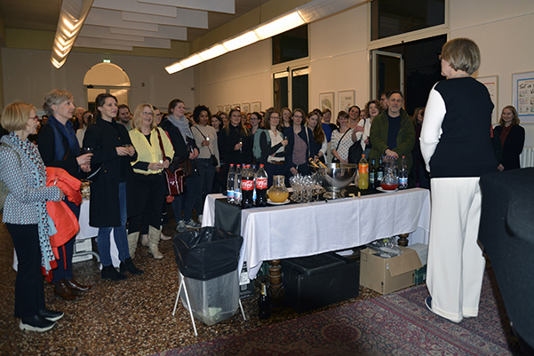 Gerstenberg feiert bereits 20 Jahre Wimmlingen, Autorin und Illustratorin Rotraut Susanne Berner ist nach Bologna gekommen und begegnet an einem Abend u.a. den zahlreichen LizenznehmerInnen ihrer Wimmelbuch-Welt. Lizenz-Chefin Ulrike Bastong freut sich, ihnen auf der Messe u.a. eine Neuheit zeigen zu können, die bei uns im Juli erscheint: Zuhause in Wimmlingen zeigt einen Tag in dem großen Wimmlinger Wohnhaus und im Garten. Erstmals kann man in die einzelnen Zimmer spazieren, sodass man die Wimmlinger Hausgemeinschaft noch besser kennenlernt.