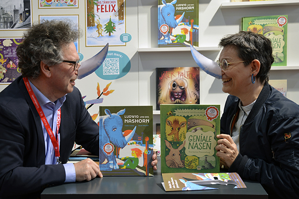 Die Illustrationen von Golden Cosmos für das frisch erschienene Ludwig und das Nashorn haben es übrigens aus 4.345 Einsendungen in die Illustrators Exhibition der Buchmesse geschafft. Nach wie vor kann man hier eine persönliche Nashorn-Nase downloaden und dann in den Sozialen Medien unter #daistkeinnashorn ein Foto von sich selbst wieder hochladen.