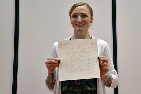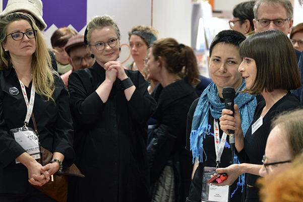 Der deutsche Gemeinschaftsstand war gewachsen, erstmals hatte Ravensburger mit einem eigenen Areal angedockt. Viel gelobt: die Organisation des Standes durch die Frankfurter Buchmesse unter der bewährten Federführung von Imke Buhre mit ihrem gut gelaunten Team. Gut besucht: der Empfang „Drink and Draw“ des Gemeinschaftsstandes am Dienstagnachmittag, bei dem neben Juergen Boos, Direktor der Frankfurter Buchmesse, auch die stellvertretende Generalkonsulin Tatjana Schenke-Olivieri sowie Yuliia Kozlovets von Art Arsenal Kiew und Maria Karipidou von der Illustratoren Organisation sprachen.