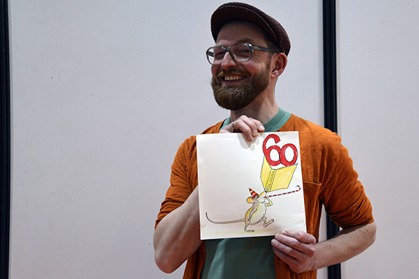 Franziska Neuhaus und Markus Weber vom Moritz Verlag haben im Herbst das Buch, das schon zum 60. Jubiläum der Bologna-Messe gepasst hätte, aber zu einem anderen Geburtstag gehört: Der Künstler Thé Tjong-Khing wird im August 90 Jahre alt, deshalb erscheint im Sommer Torte für alle! Bis dahin sind die Brillen, mit denen die Gäste der Bologna-Messe-Feier im Palazzo Re Enzo ausgestattet wurden, sicher umgebaut.