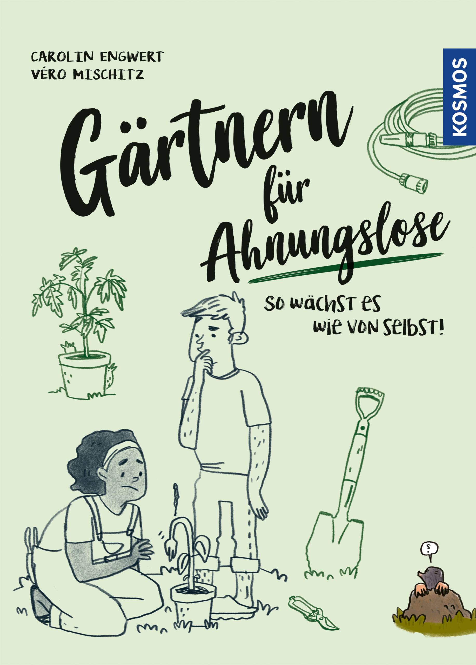 Der Frühling steht vor der Tür und für manche geht das große Gärtnern los. Autorin Carolin Engwert und Illustratorin Véro Mischitz haben mit Gärtnern für Ahnungslose (Kosmos) ein Buch kreiert, das ganz ohne Fotos auskommt und dennoch charmant die Grundregeln eines erfolgreichen Gartenstarts erklärt. Anlass für Fragen:
