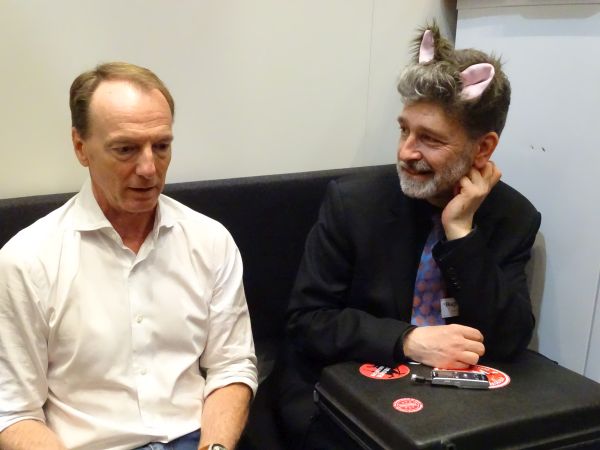 Hier sehen Sie Heinrich Riethmüller, sozusagen unsere Karin Schmidt-Friderichs der Zwanzigzehnerjahre, zusammen mit Markus Fertig / MVB. Herr Fertig und ich haben wie zwei Heulsusen die Espressoschlange beweint, anstatt uns anzustellen.