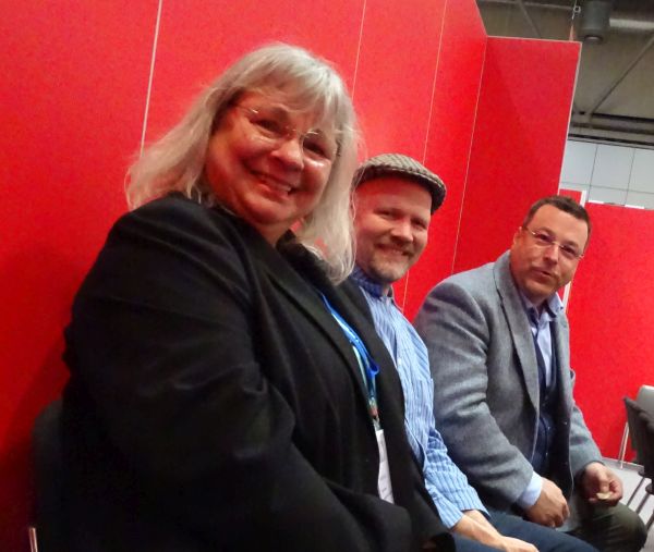 Ich hoffe, Sie hatten einen schönen Messefreitag. Weil das KiWi-Gruppenfoto vom Anfang nicht zählt, schulde ich der Welt noch das tägliche Mustonenfoto; und wie je oszilliere ich zwischen dem Wunsch, Mirjam Mustonen gerecht zu werden, und dem Drang, doofe Fotos zu posten.
