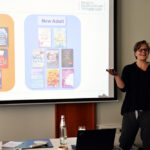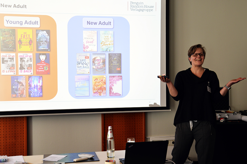 In Arbeitsgruppen diskutierten die Teilnehmer:innen verschiedene Varianten, eine Kinderbuch-Fläche zu strukturieren. Dabei kam auch die Frage nach dem Unterschied zwischen Young und New Adult auf. Da traf es sich zum einen gut, dass sich Junior-Lektorin Emily Brodtmann bei Arctis längst in die Thematik eingearbeitet hat und Begrifflichkeiten erklären konnte. Zum anderen hatte Christina Wätjen, Vertriebsleiterin Kinder- und Jugendbuch in der Verlagsgruppe Penguin Random House, dazu eine Präsentation für die IGUS-Tagung am Sonntag in Frankfurt am Main vorbereitet, die beim avj-Praxisseminar am Samstag spontan ins Programm eingebaut wurde.